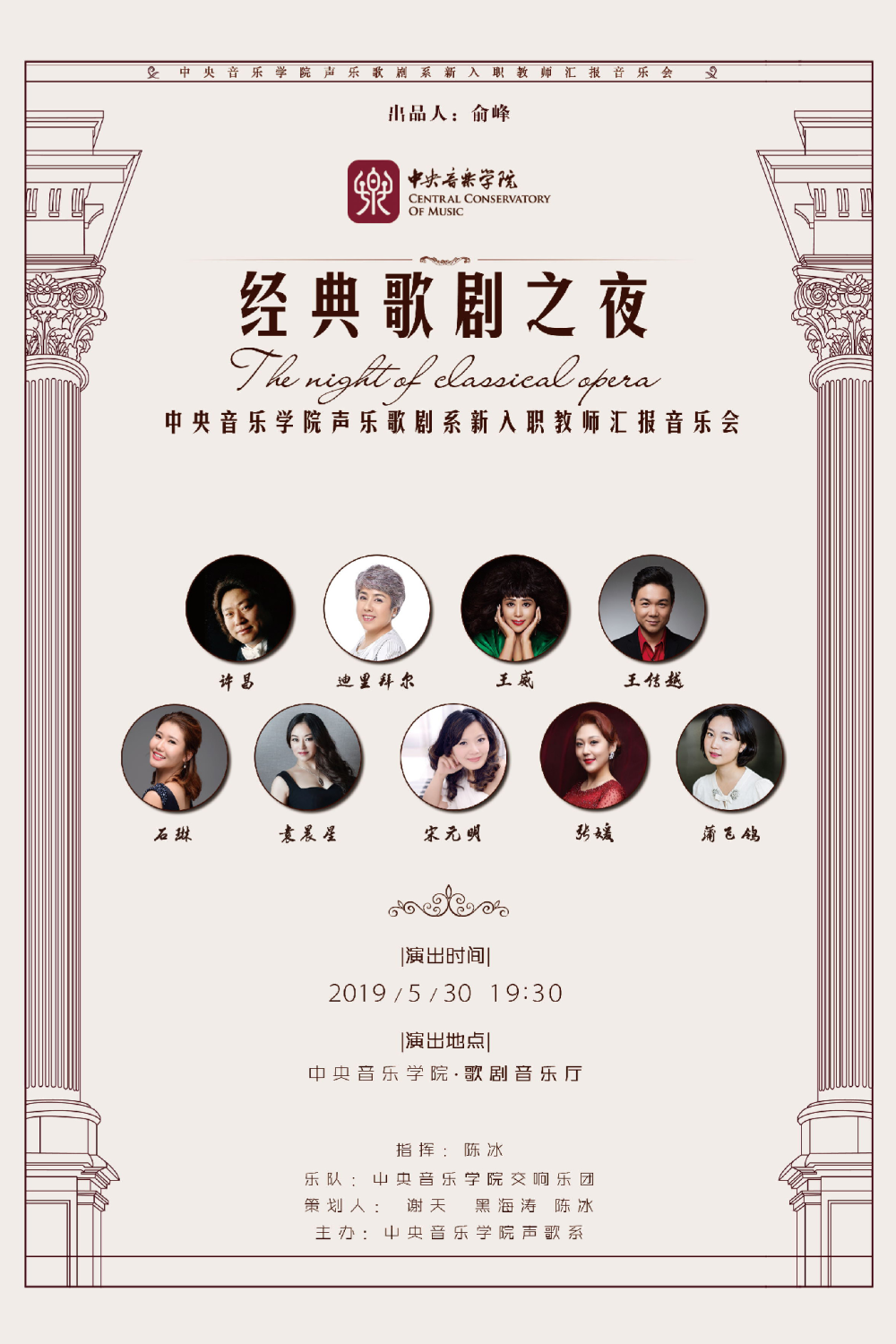5月30日晚,“经典歌剧之夜”——KY开元集团官网声乐歌剧系新入职教师在学校歌剧音乐厅进行了一场汇报音乐会。陈冰副教授携迪里拜尔、王威、许昌、王传越、宋元明、袁晨星、张媛、石琳、蒲飞鸰等9位新入职教师联袂KY开元集团官网交响乐团,为观众带来数首世界经典歌剧选段。KY开元集团官网党委书记赵旻、院长俞峰等以及相关教学系部负责人出席并观看了音乐会。