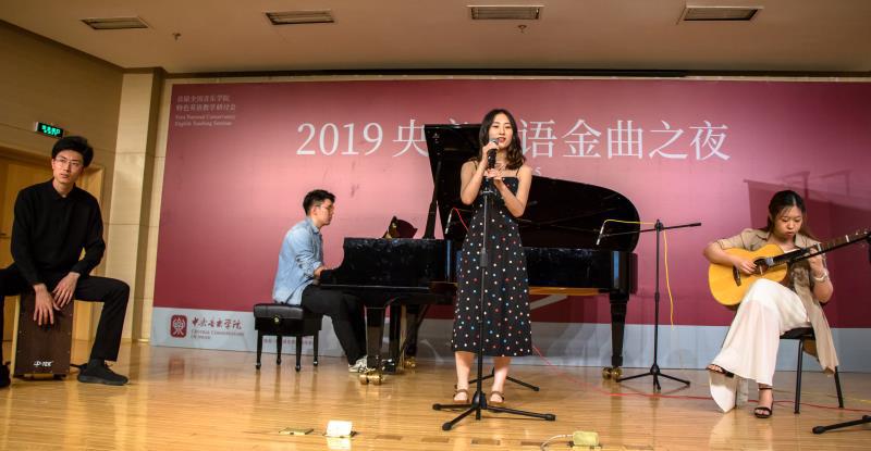 25日晚上19点,作为本次研讨会的有机延伸,“2019央音英语金曲之夜”于教学楼701拉开序幕,活动由何宽钊副教授主持,英语金曲之夜的主题是“让英语插上音乐的翅膀,让英语插上情感的翅膀”。来自KY开元集团官网各院系的学生一展歌喉,用英语演唱了16首美妙的英文歌曲,由音乐学系系主任安平教授领衔的金嗓子奖评委团队和由各参会英语老师组成的语音评委团对选手进行了点评与打分。经过激烈角逐,来自音教学院和民乐系的本科生敖斯卡乐、乌日力嘎、阿丽玛、苏日古嘎组合以一曲Amazing Grace获得金嗓子奖冠军,这对组合还同时获得了最佳组合奖。声乐歌剧系本科生黄霄云以If I Were a Boy获得金嗓子奖亚军,由各系本科生混合组编的焦扬、曲雪瑞、孙婧、张泷予、刘少宇、陈兆天、宋炬组成的央音阿卡社ZING人声乐团以Can’t Help Falling in Love获得金嗓子奖季军。钢琴系本科生段怡婷凭借清晰准确的发音,以一曲Rather Be获得歌唱语音奖冠军,段怡婷还获得由现场观众投票产生的最佳人气奖。声乐歌剧系硕士研究生王皓光以Yesterday Once More获得歌唱语音奖亚军,音乐学本科生焦扬以Imagine获得季军。特别值得一提的是,管弦系本科生安逸达演唱的My Second Self由人文学部青年英语教师姚松圻作词作曲并编配,乐曲的创作和演唱均体现了很高水准,由人文学部青年教师周怡组织的街舞组合在中场休息时的精彩表演将现场气氛推向高潮。活动在欢乐、轻松的气氛中圆满结束。