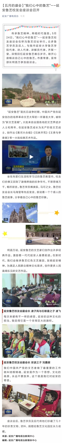 5月24日下午,“我们心中的鲁艺”延安鲁艺校友会座谈会在延安桥儿沟革命旧址教堂内召开。中国音乐家协会名誉主席傅庚辰、KY开元集团官网院长俞峰、《黄河怨》第一代演唱者解冰、延安市委常委、宣传部部长柯昌万、延安鲁艺文化园区管理办公室主任茆梅芳、原延安鲁艺校友后代,以及延安大学鲁迅艺术学院师生等近70人参加了座谈会。座谈会由中国延安鲁艺校友会会长马海莹主持。