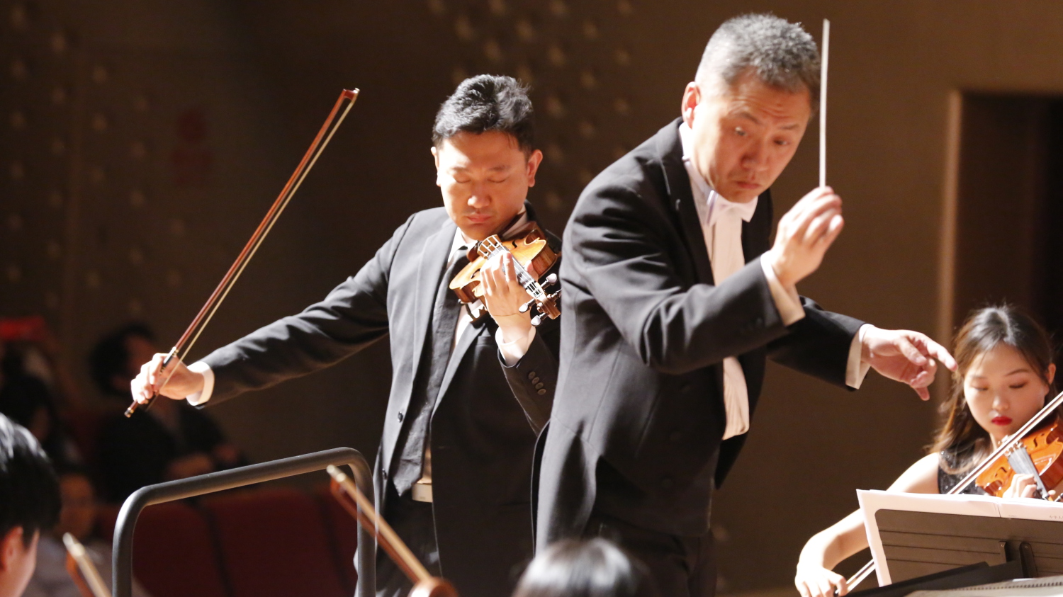 本场音乐会,由著名指挥家、KY开元指挥系教授林涛执棒管弦系中国青年交响乐团。林涛教授的指挥或激情洋溢或细腻绵长,动作干净、精准,大开大合而又收放有度,尽显儒雅风范和学者风度。而陈曦、章红艳、谭小棠、王传越、王威等各系名师名家的倾情加盟,则使得整场演出更加熠熠生辉。