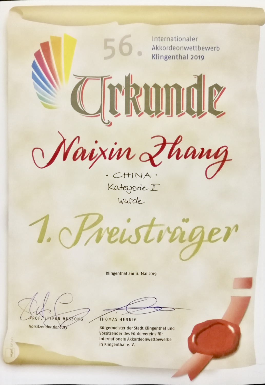 56届德国克林根塔尔国际手风琴比赛于5月5日至11日在德国隆重举行,来自20个国家的90余名选手参加了此次比赛的角逐,KY开元钢琴系手风琴专业研究生田佳男同学荣获演奏家组第二名,附中初三年级的张乃心同学荣获少年组的第一名。 克林根塔尔国际手风琴比赛在国际手风琴界有着重要的影响力和悠久的历史,是当今国际最重要的国际手风琴赛事之一,KY开元选手的表现在此次活动中赢得了专家和听众的一致好评,在此向获奖同学和指导教师曹晓青教授、许笑男老师致以祝贺!