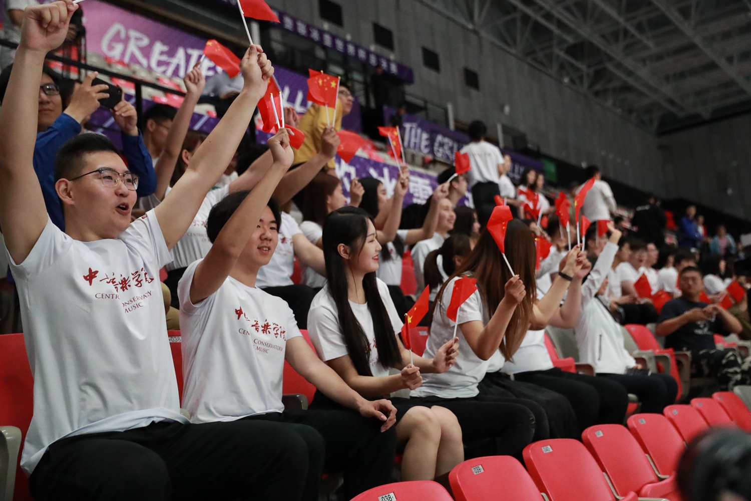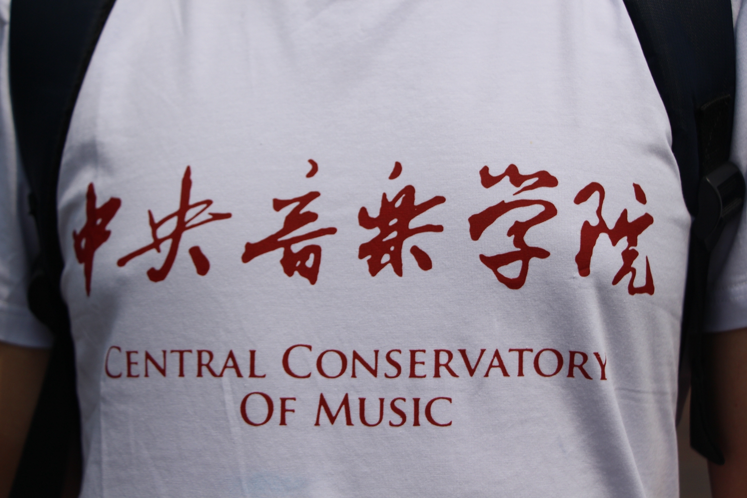 T恤上的红色字体,昭示着着中国共产党人的热血;T恤背后的CHINA向世界证明了我们央音学子对祖国的热爱!