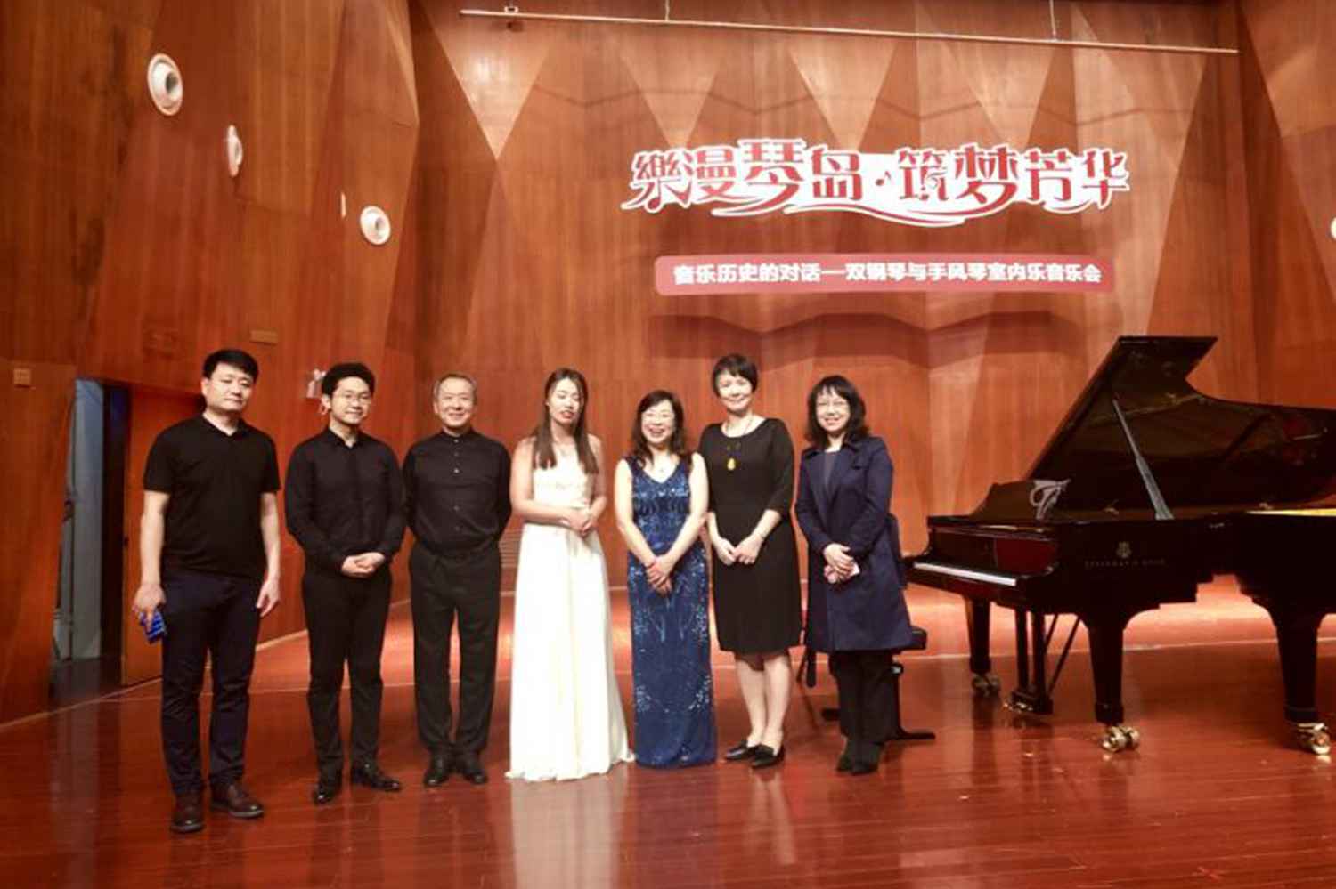 左起鼓浪屿钢琴学校钢琴学科主任汪洋老师、KY开元许笑男教师、张志玮副教授、许歌卉教师、陈曼春教授、