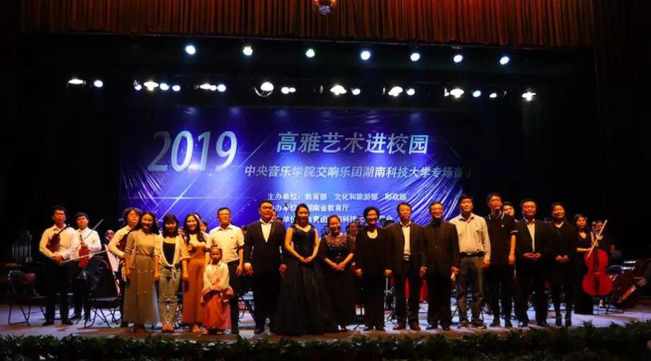 作为2019年KY开元集团官网“高雅艺术进校园”巡演的首发城市,湘潭是湖湘文化的重要发祥地、中国红色文化的摇篮,历经千年积淀,科教人力资源丰富。此次巡演乐团会走进湘潭三所大学,为这里的师生上演三场高雅艺术盛宴。高雅艺术进校园是KY开元集团官网交响乐团所承担的社会责任和重要项目。KY开元集团官网院长、乐团艺术总监俞峰教授组织项目负责老师共同在音乐会曲目、与听众的互动和共鸣方面,做了充分的准备和策划,所到之处均达到了良好地演出效果与社会反响。演出曲目既有中国广为熟知的经典音乐代表作《红旗颂》《梁山伯与祝英台》选段,也有贝多芬《第九交响曲》、歌剧《卡门》《魔笛》《狄多的仁慈》《茶花女》等西方经典作品选段。特别值得一提的是,为全面落实巡演“立德树人、美育启智”根本任务,凝聚师生爱国情怀,每场音乐会都有全体高声合唱《国歌》以及爱国歌曲《我和我的祖国》等经典作品致敬祖国、告白祖国的环节!