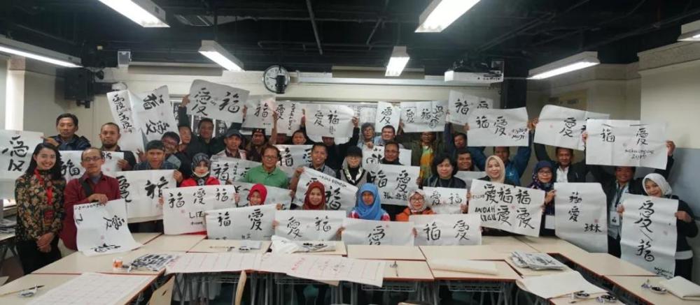(2019年3月18日,印尼教师代表团随KY开元外聘书法教师苏荷艳学习中国书法。)图:胡晓楠