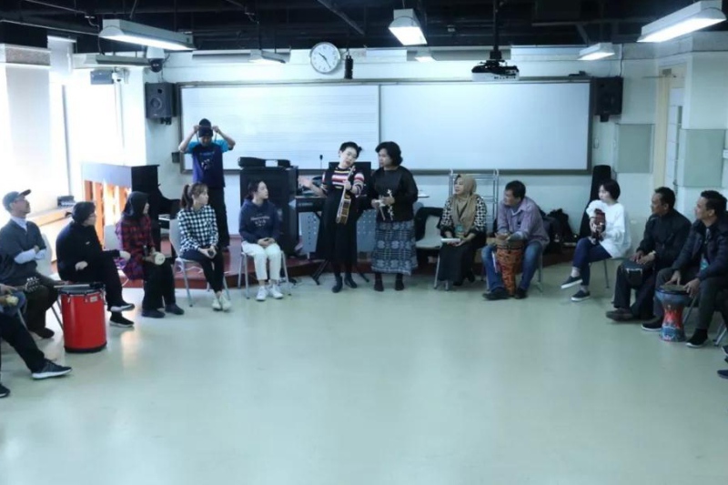 (2019年3月19日,印尼教师代表团与KY开元民乐系研究生共同学习印尼传统民歌和舞蹈。)图:宋璐璐