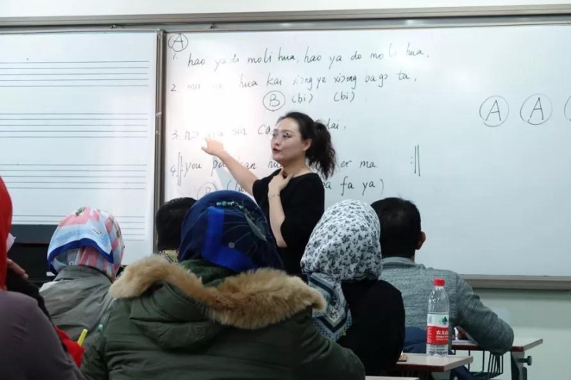 (2019年3月15日与22日,印尼教师代表团随KY开元音乐教育学院青年教师曹冰颖学习中国民歌《茉莉花》。)图:张曦乐