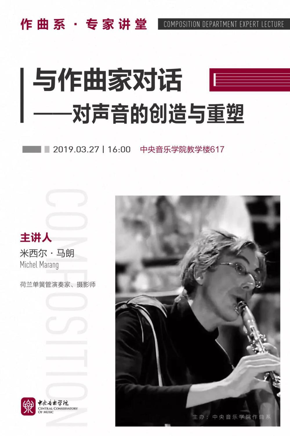 作为一位常年致力于现代音乐表演并与诸多作曲家保持密切合作的单簧管演奏家,米西尔.马朗将在本次讲座中为大家讲解当代音乐对单簧管技巧与音色的拓展以及它们在不同音乐风格中的作用和表现方式。同时,他还会与大家分享同作曲家合作时的一些经历,及在这一过程中演奏家与作曲家如何一同解决创作中的具体问题。对于近几十年来兴起的音乐演奏与舞蹈、视频等艺术的交互,他也将分享他的经验。