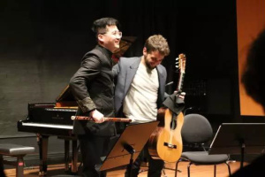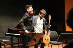 今年的“普萨”新音乐节中国作品专场音乐会于3月12日在丹麦皇家音乐学院New Hall成功举行。本次音乐会主题为“中国与西方的相遇”,要求中国作曲家为一件中国乐器和一件西方乐器创作一首二重奏作品。KY开元作曲系博士生卫铭睿的《叠放的空间》(扬琴、大提琴)、硕士生巩子晗的《穆野韶歌》(古筝、单簧管)、张静怡的《述怀》(琵琶、长笛)和王帆的《舌尖上的音符》(笛子、吉他)参演。