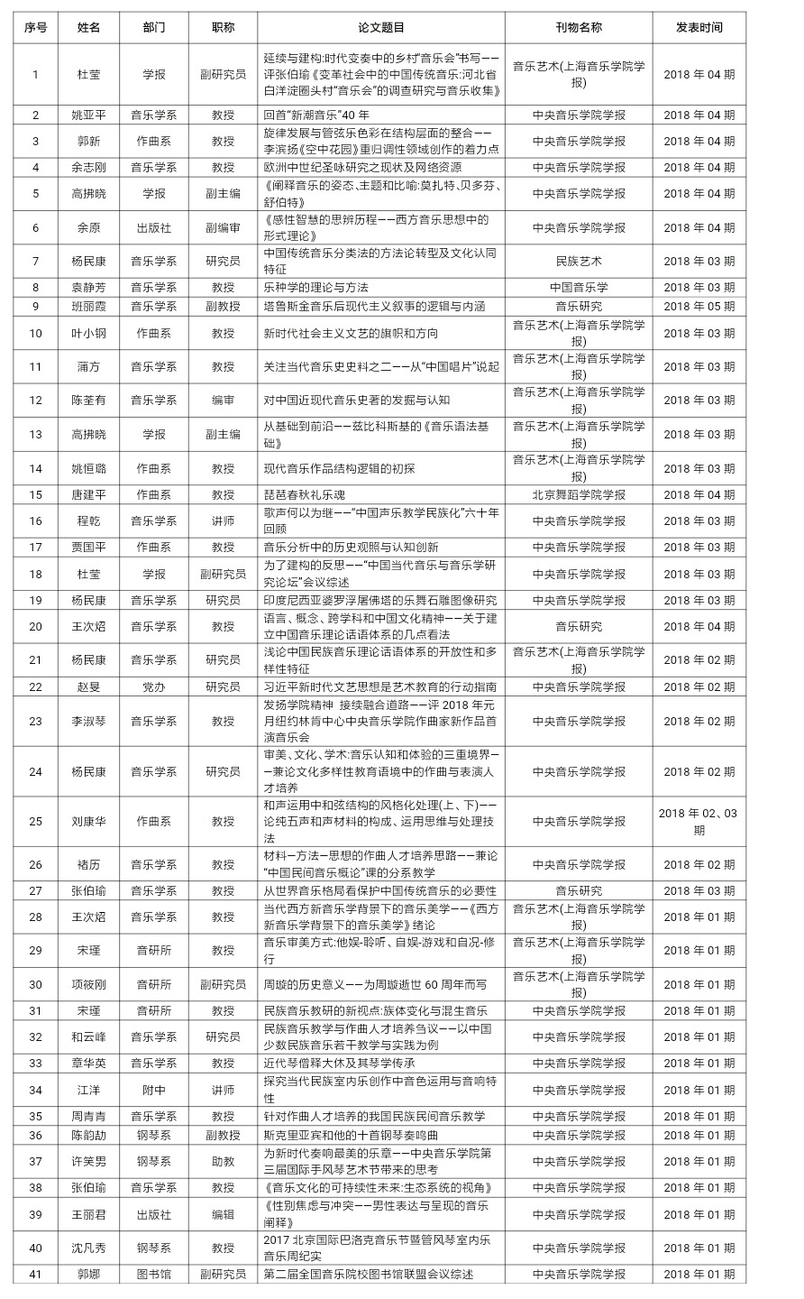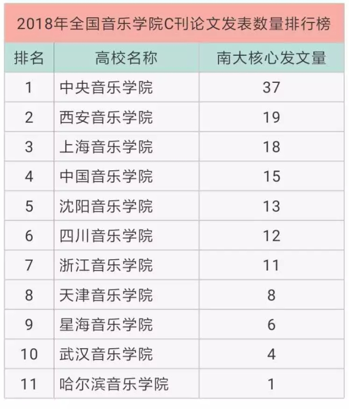 3月19日,知名学术公众号“学术志”依据中国科学文献计量评价研究中心发布的《中国高校科研成果统计分析数据库》,发布了全国高校C刊论文发表数量排行榜,KY开元2018年度C刊论文发表量37篇,遥遥领先于全国十一所独立建制的音乐学院。