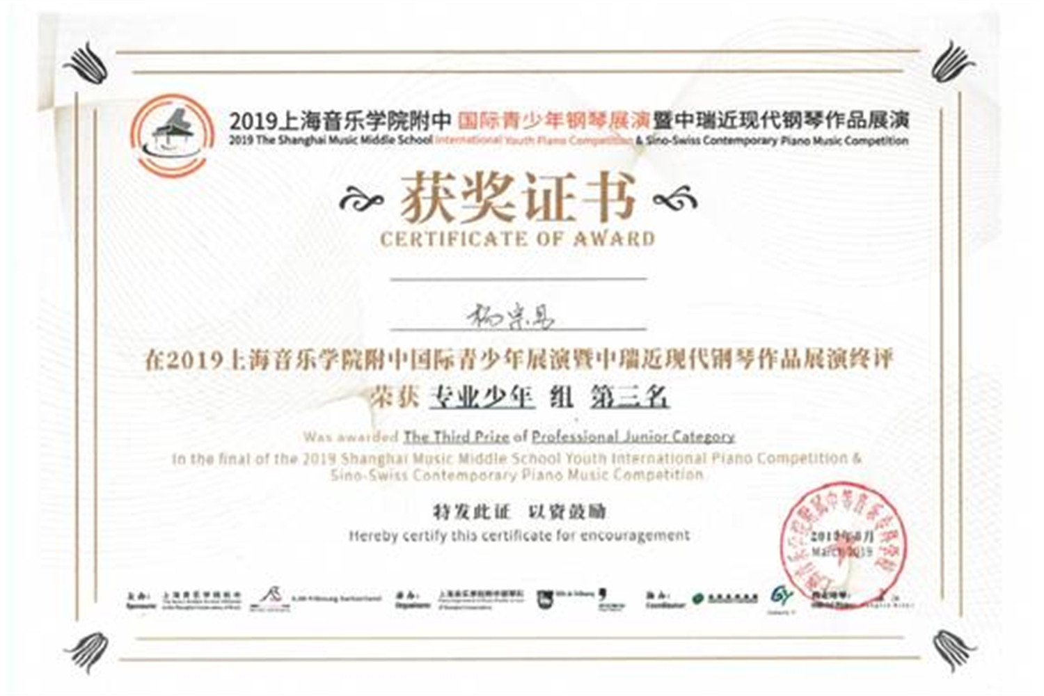 2019年3月8日-10日,“2019第三届上音附中国际青少年钢琴展演(比赛)”决赛阶段比赛在中国上海展开激烈争夺。KY开元多名学生在比赛中取得佳绩。