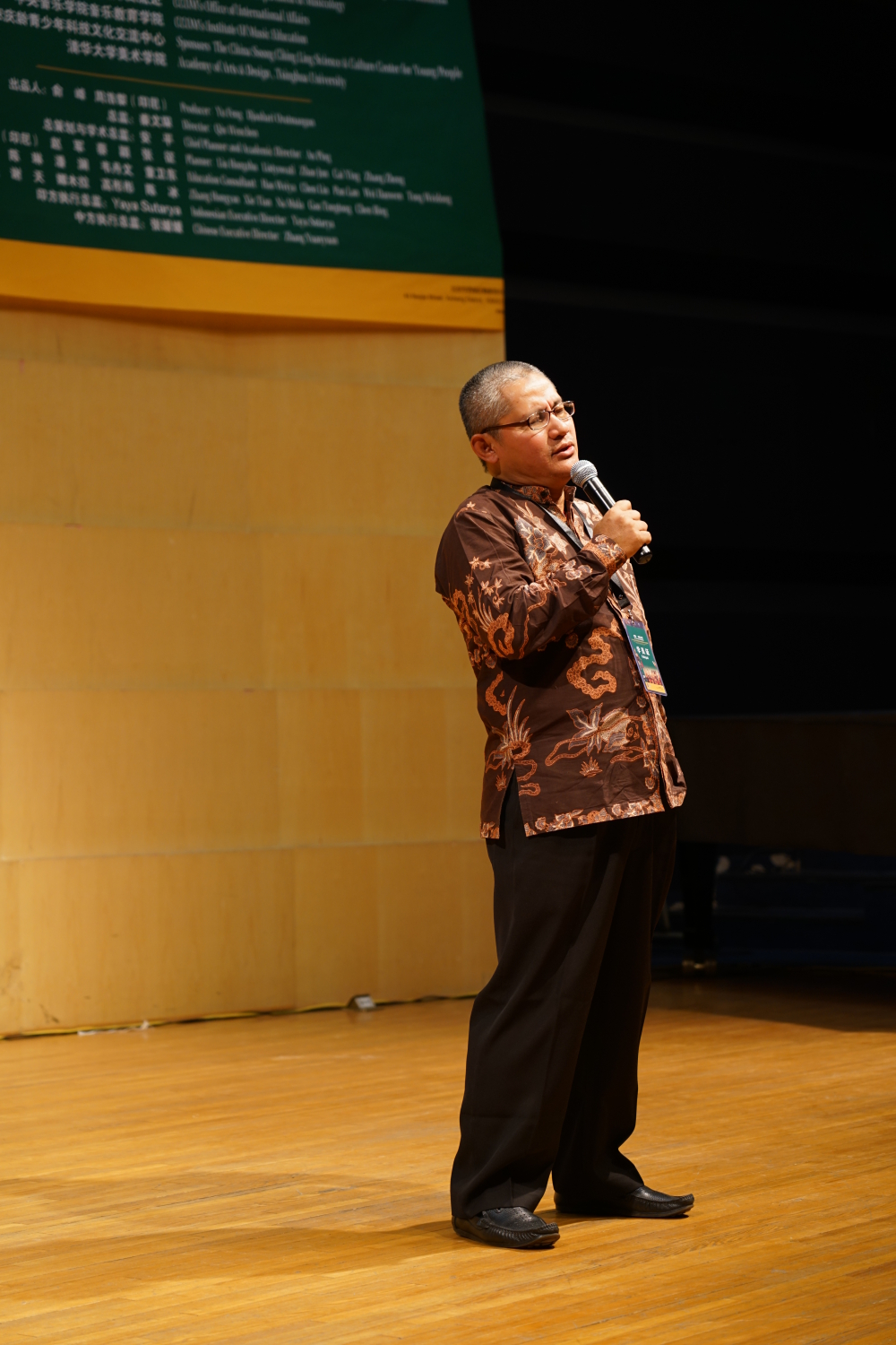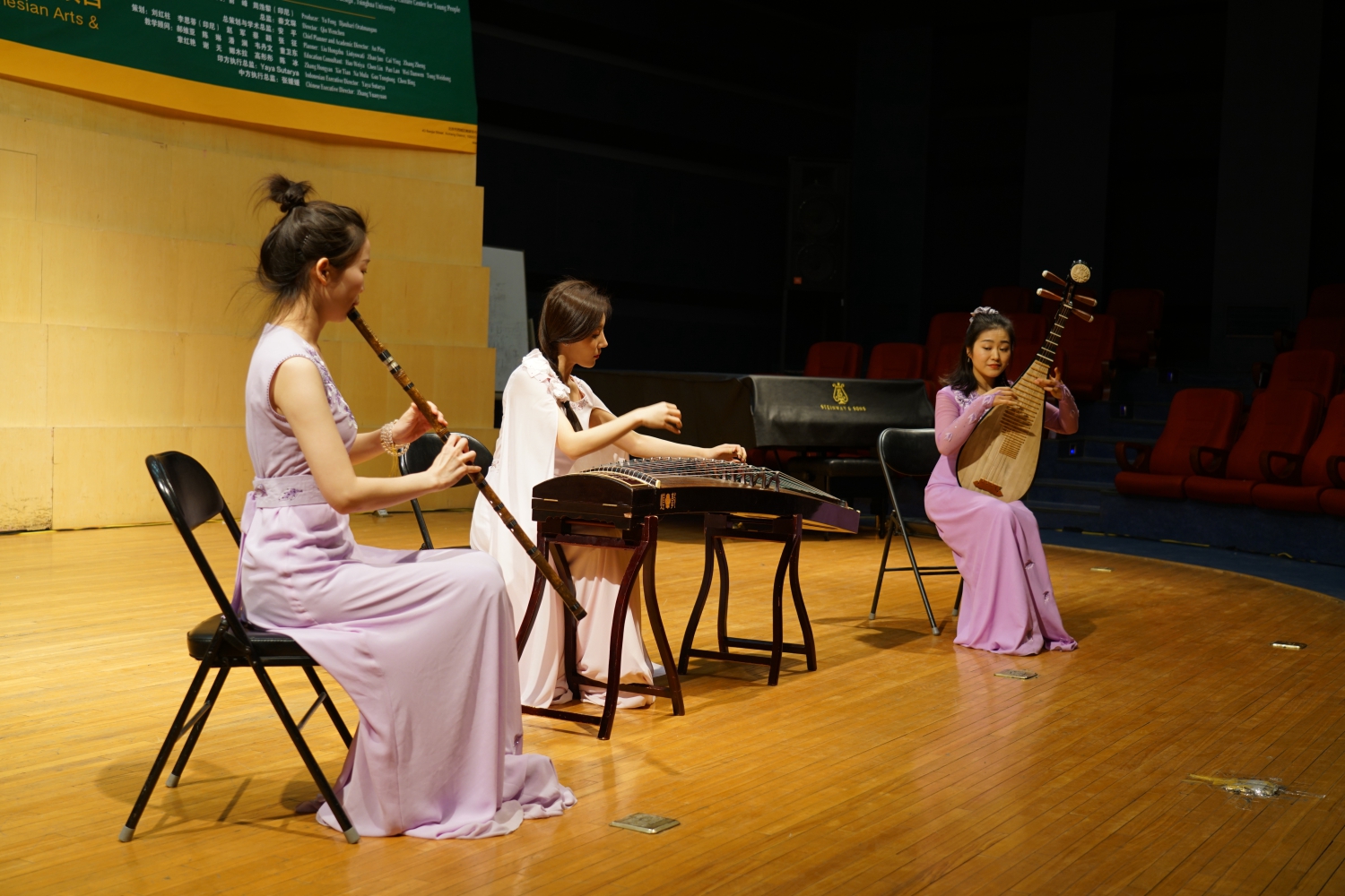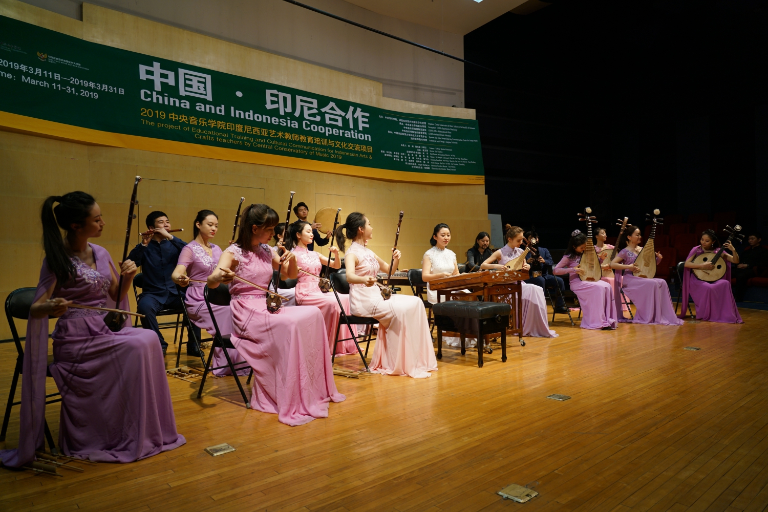 随后,是中国与印尼双方的文化交流演出环节。首先,由KY开元集团官网民族室内乐团依次上演了三首具有中国特色的代表性曲目,分别为中国古曲《春江花月夜》、中国民间乐曲《百鸟朝凤》、以及由青年作曲家李博禅编创的《一带一路随想》。三首作品,均由青年指挥家、KY开元集团官网指挥系党总支副书记陈冰副教授进行现场讲解,展现了三种不同风格,将中国民乐的独特韵味与强大包容性展现得淋漓尽致,获得印方交流团成员的一致好评。