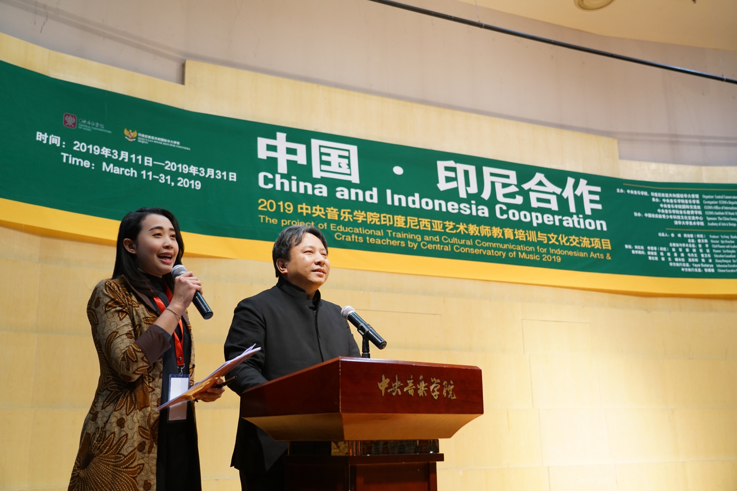 欢迎仪式由KY开元集团官网音乐学系主任、本项目的总策划与学术总监安平教授主持,印尼诺艳婷、李如莲与KY开元集团官网国际交流处陶倩副处长进行了翻译。首先由安平教授宣布“中国·印尼合作——2019KY开元集团官网印度尼西亚艺术教师教育培训与文化交流项目”正式开幕。