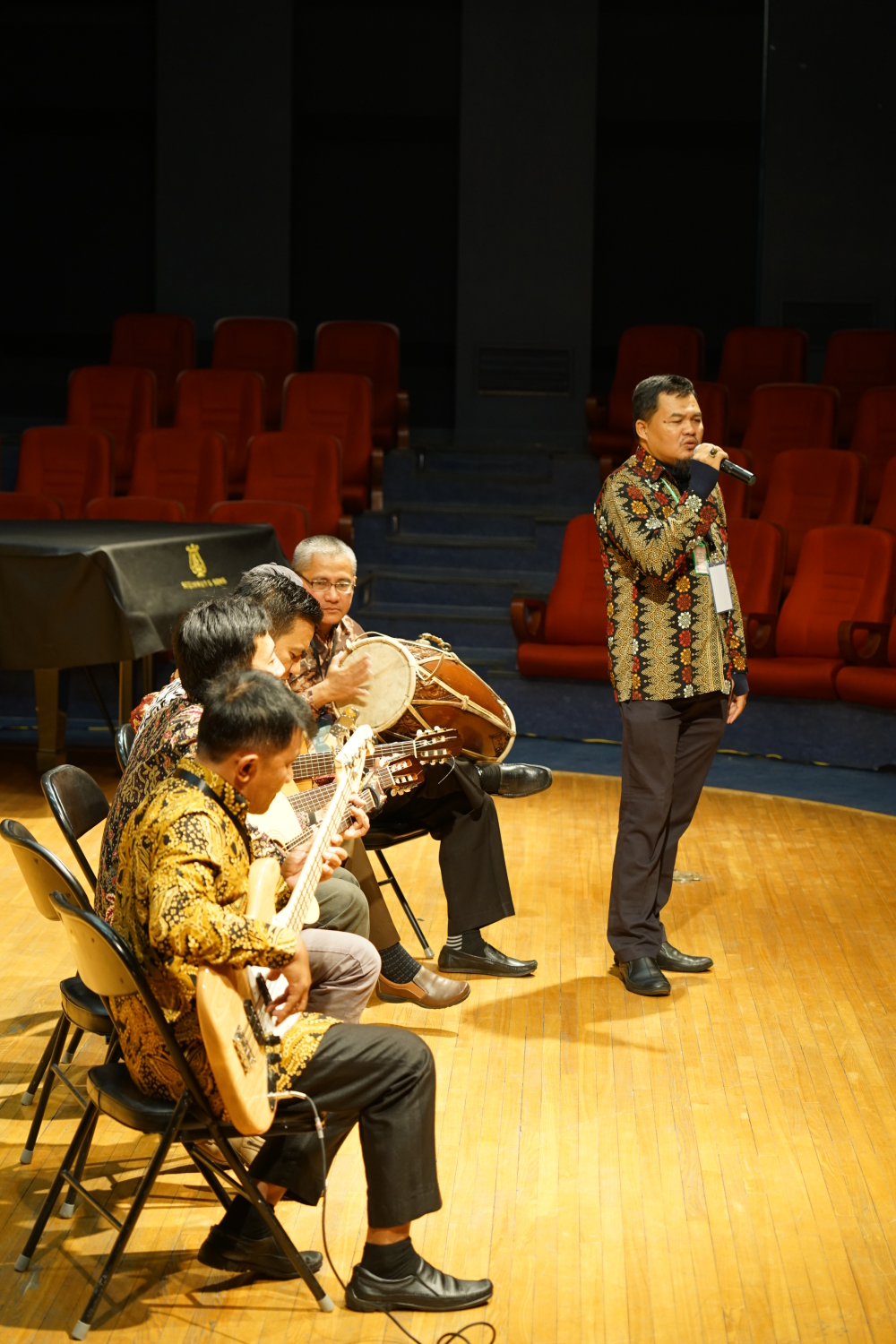 随后,来自印尼图尔日惹高等学院(Kasihan-bantul-jogja)的Kartiman,Wibisono,Wardi,Andriyanto等音乐家们,分别带来了两首印尼经典歌曲《Bengawan Solo》《Yan ing tawang ono lintang》。他们的表演情感真挚,令人动容,赢得了在场听众的热烈掌声。