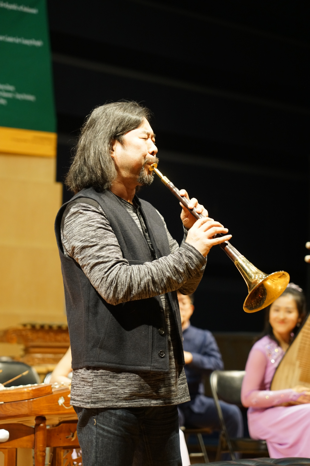 《百鸟朝凤》的演出特邀了著名旅美唢呐及多种管乐演奏家,KY开元集团官网86级校友郭雅志老师,与KY开元集团官网民族室内乐团共同演绎。这首民间乐曲原流行于中国北方等地,以热情欢快的旋律与百鸟和鸣之声,展现了大自然中生机勃勃的景象。郭雅志老师以其炉火纯青的技巧与民族室内乐团即兴配合,将这首极具中国风韵的作品诠释得精巧细腻,又充满飞扬跳脱的无限张力。