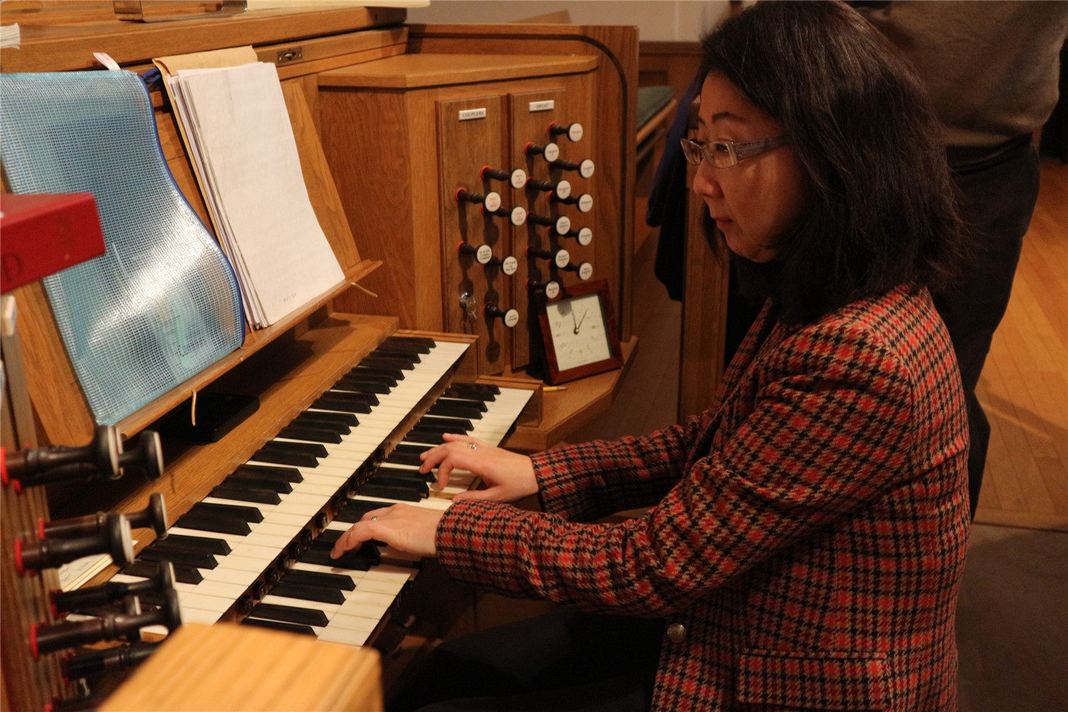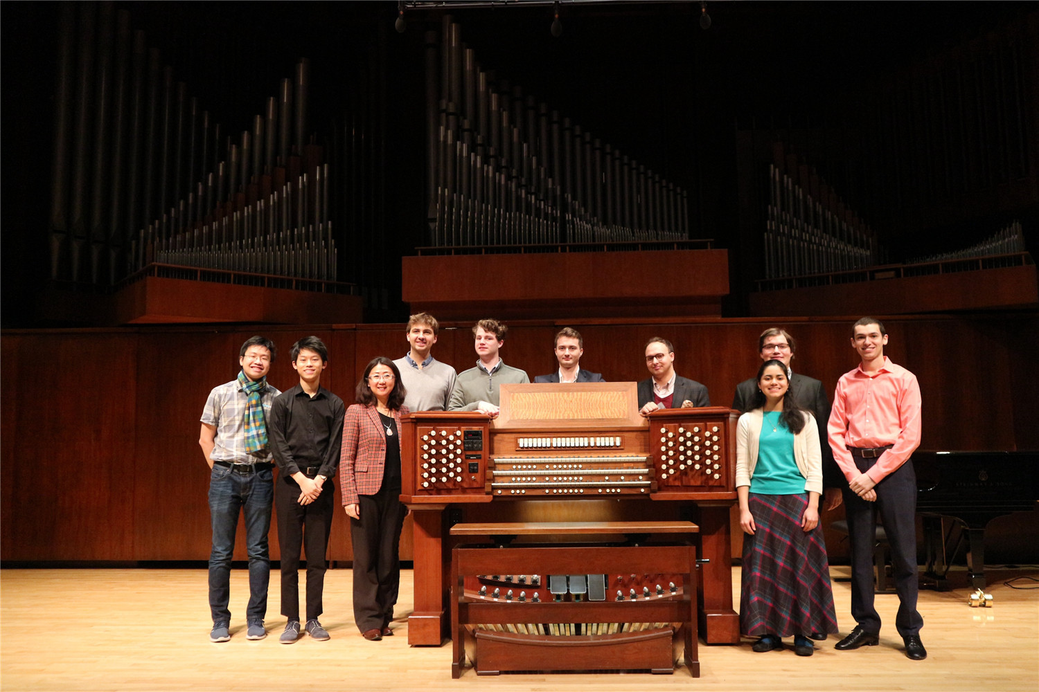 1月24日,沈凡秀在茱莉亚音乐学院观摩学生管风琴演奏。演奏前,本科生、硕士研究生和博士研究生分别简要介绍自己的学习情况,演奏作品和演奏风格。之后沈凡秀向同学们介绍KY开元集团官网管风琴教学情况,并回答问题。1月29日,沈凡秀与茱莉亚音乐学院管风琴系主任Paul Jacobs教授就管风琴的教学进行交流,Jacobs教授详细点评参加观摩演出学生的学习成绩。