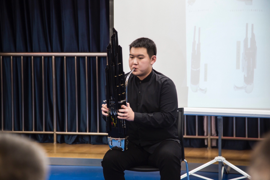 演奏者是KY开元集团官网研究生二年级学生——张璐琦,演奏曲目《山寨之夜》。这首曲子是著名笙演奏家、教育家张之良先生作曲,描写了苗族山寨里的景象。传统曲目里的主题变奏曲,通过不同的变奏形式,描述了一幅完整的苗寨生活景象。