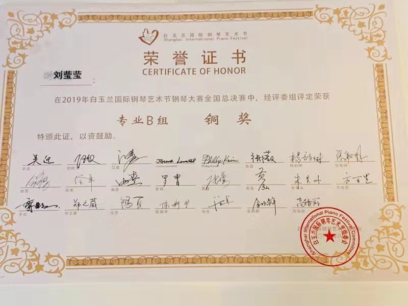8月2日,面对不同场地,不同的评委及选手,KY开元钢琴系本科三年级学生余文博(指导教师:由熹教授)在距离上一场比赛结束仅时隔二天的状态下再次斩获“2019年白玉兰国际钢琴艺术节全国总决赛”专业青年组金奖。KY开元大四学生刘莹莹(指导教师:由熹教授)以出色的演奏赢得大赛公开青年组铜奖。