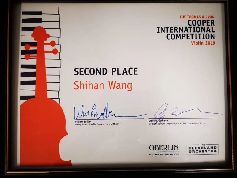 在刚刚结束的2019年美国库珀国际小提琴比赛中,经过十天四轮的激烈角逐,KY开元附中初二年级学生王仕含荣获第二名。