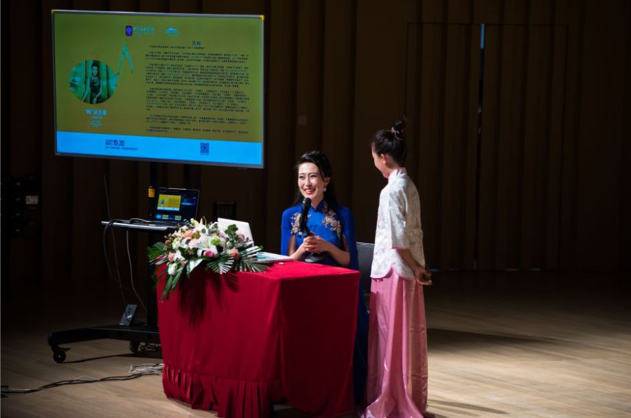 在引领观众们听完筝曲《苍歌引》《云裳诉》《定风波》《如是》的现场演奏后,苏畅老师展开关于音乐的表现力的讲解,她认为音乐演奏的“完整性”很重要,要能驾驭乐器,驾驭音乐,驾驭观众。从“有谱无琴”到“有谱有琴”、“有琴无谱”,最终达到“无谱无琴”的最高境界。