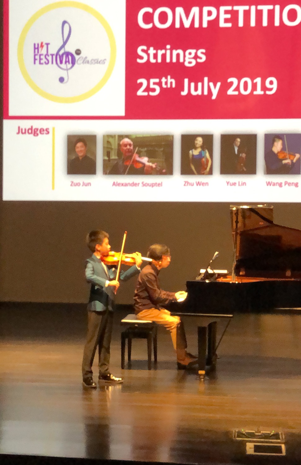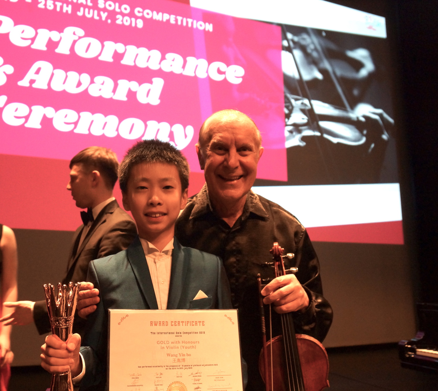 在刚刚结束的新加坡2019国际独奏比赛(Singapore International Solo Competition2019)中,KY开元集团官网附中年仅12岁的小提琴专业学生王胤博从几十位选手中脱颖而出,以全场比赛最高分的绝对优势一举摘得特别金奖(Gold with Honours,注:此奖项设置为比赛最高奖项)。指导教师:赵薇教授,岳麟副教授。(特邀钢琴艺术指导:王春副教授)。