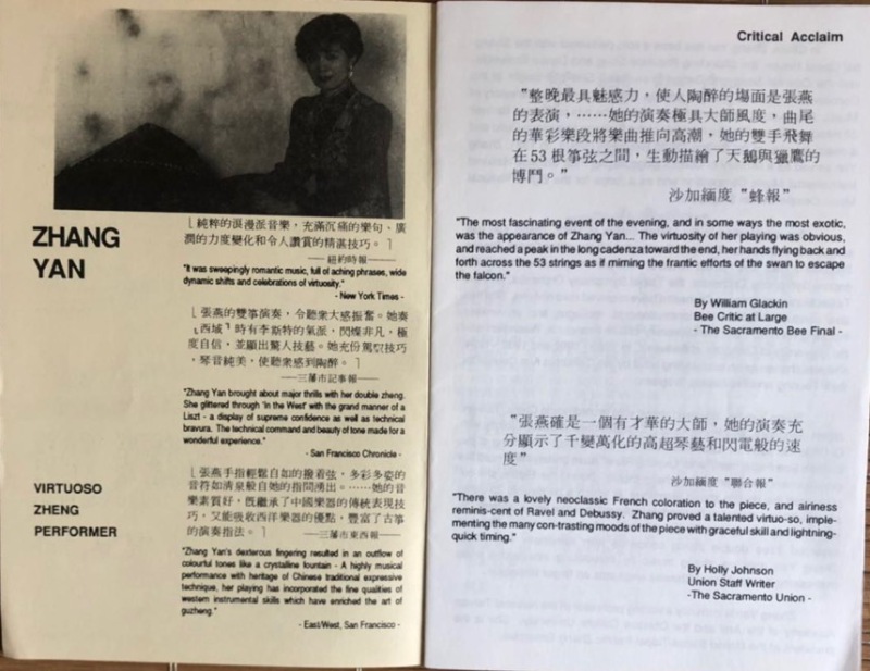 1987年国外新闻媒体对张燕老师弹奏双筝的报道
