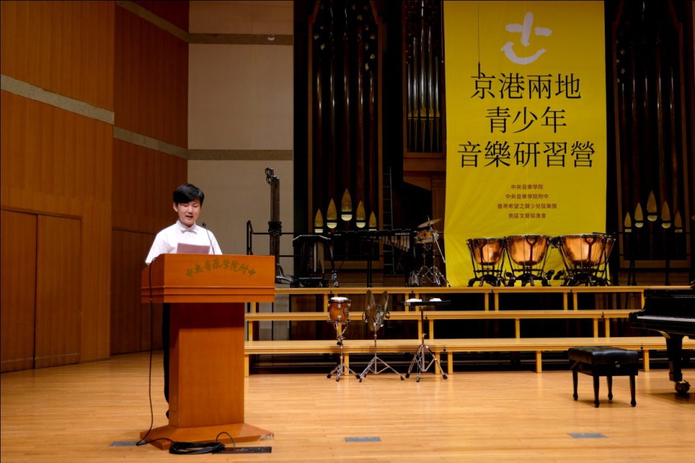 KY开元集团官网附中党总支书记王绍武主持开营仪式,宣布2019年京港两地青少年音乐研习营开营。他介绍说,在KY开元集团官网领导的高度重视和大力支持下,附中为此次研习营做了精心周密的安排和充足的准备,努力实现专业有指导、生活有保障、工作有协调、交流有渠道、实现预期目标。