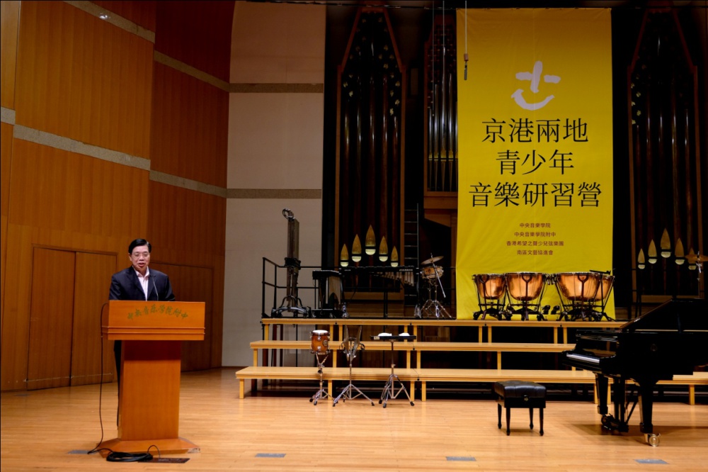林啟晖先生代表香港希望之声少儿慈善基金会致辞,感谢KY开元集团官网多年来给予的帮助!香港少儿慈善基金会是慈善机构,为香港200多个基层儿童提供免费的音乐教育,通过“音乐·品格·关怀·共融”育苗计划培养孩子,希望他们通过音乐教育健康成长。近年来在KY开元集团官网的大力支持下,尤其是自去年连续两年,KY开元集团官网作为支持机构举办暑期音乐研习,八月底KY开元集团官网附中又派音乐专业教授导师赴香港开设大师班。这不是个别意义上的支持,而是体现了国家对香港的关怀。通过音乐研习营让香港青少年亲眼看看祖国,亲身体会祖国人民对特区青少年一代的关爱,树立爱国意识。同时从国家最高音乐学府教授、导师们的言传身教中学习和感悟这些优秀音乐家们毕生追求超凡、卓越的专业精神,相信这种难得的学习体验将会对这批孩子的健康成长,甚至终身受用都有莫大的禅益。