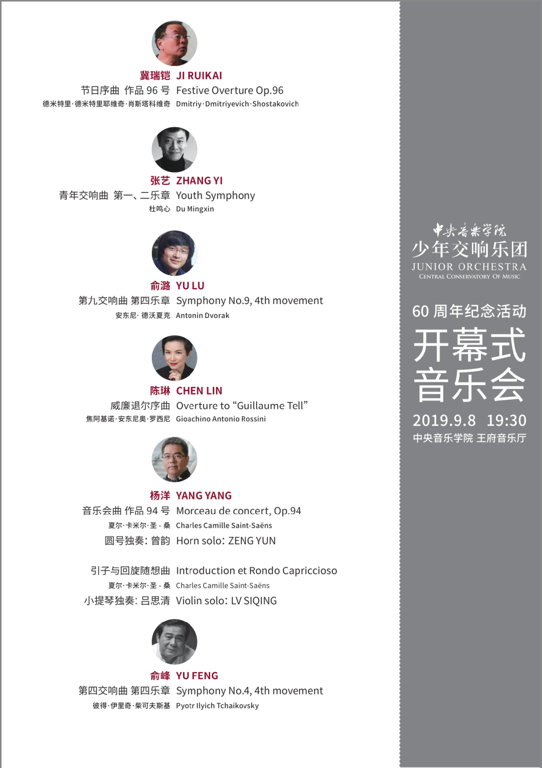 一、开幕式重磅音乐会暨“KY开元集团官网少年交响乐团60周年纪念音乐会”将力邀为“少交”成长做出卓越贡献的6位知名校友指挥家与蜚声海内外的知名校友演奏家联诀演出。