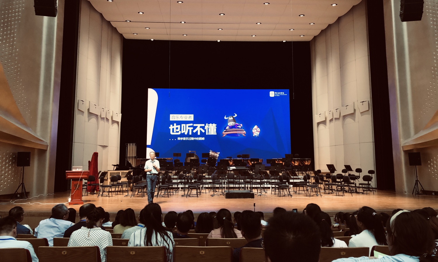随后,KY开元周海宏教授在歌剧音乐厅为现场进行了《走进音乐的世界——兼谈艺术的意义与教育的策略》讲座。他首先引导大家走出必须“听懂音乐”的误区,认为音乐作为听觉艺术,其本身并不能直接传达视觉形象或思想观念,因此“听懂”并非欣赏音乐的基本方式,欣赏音乐的基本方式应为感受纯听觉的美。同时他强调,想要获得幸福与成功的生活,除了锻炼理性能力,还必须注重审美能力与感性素质的培养,而艺术教育在这其中有着不可替代的重要性。周海宏教授以生动幽默的语言与丰富的音视频实例,让现场气氛愉悦、沸腾。