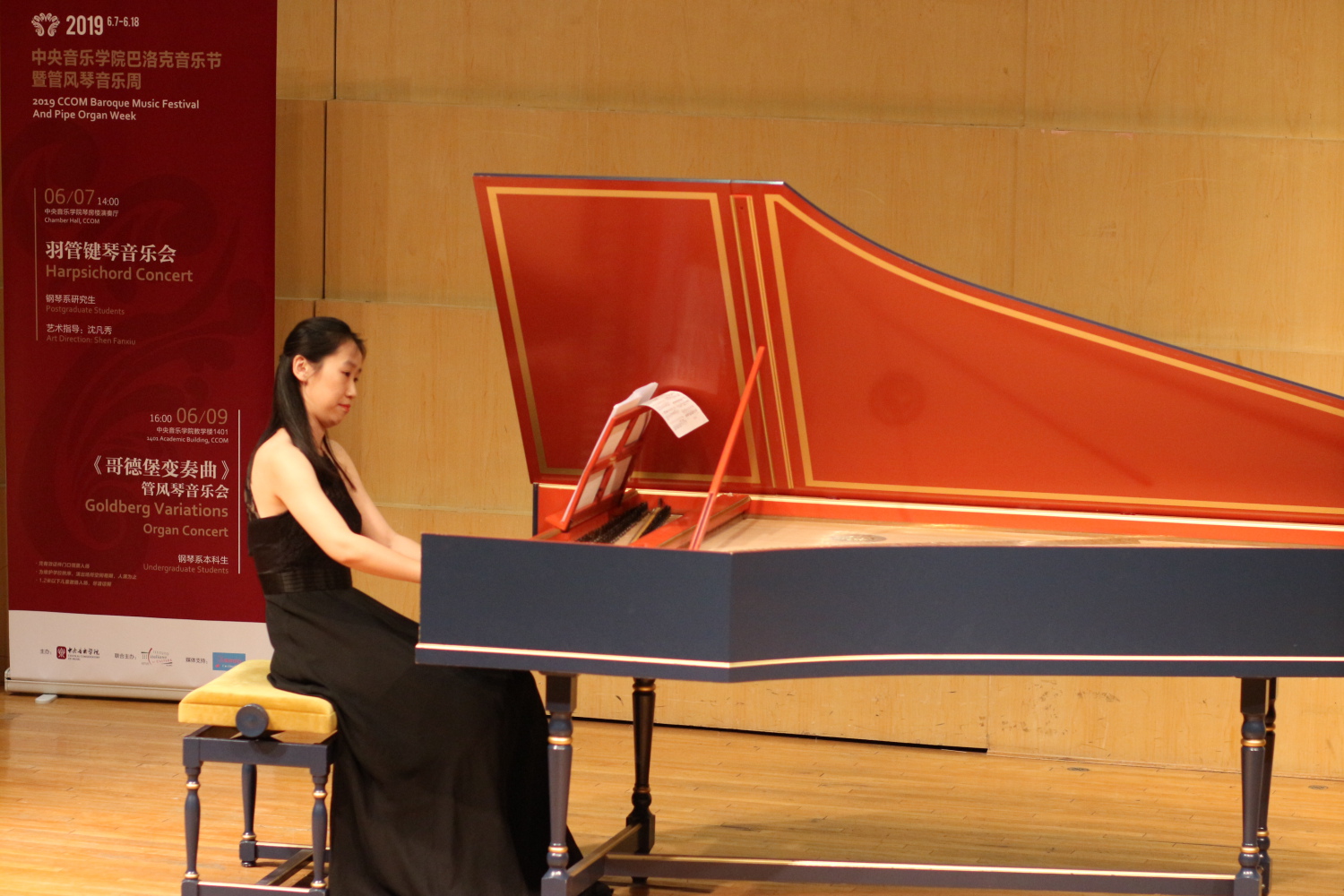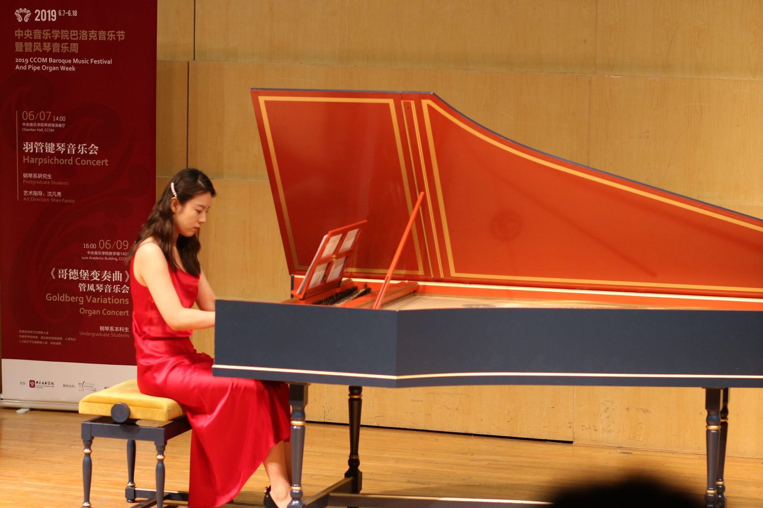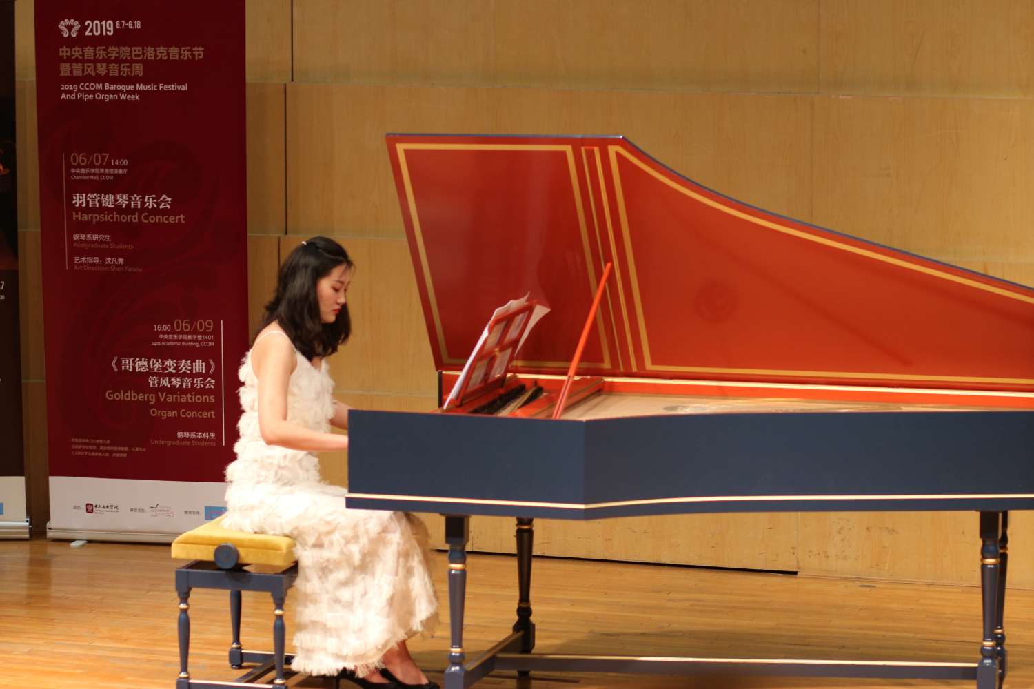 在琴房楼演奏厅举行羽管键琴音乐会,由跟随沈凡秀学习羽管键琴演奏的钢琴专业研究生丛榕、李晗、金惠珍和陈曼演奏巴赫和斯卡拉蒂羽管键琴作品。