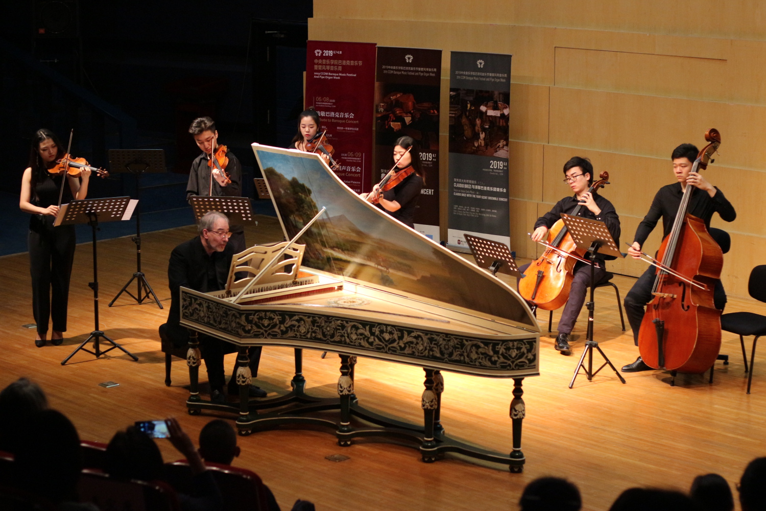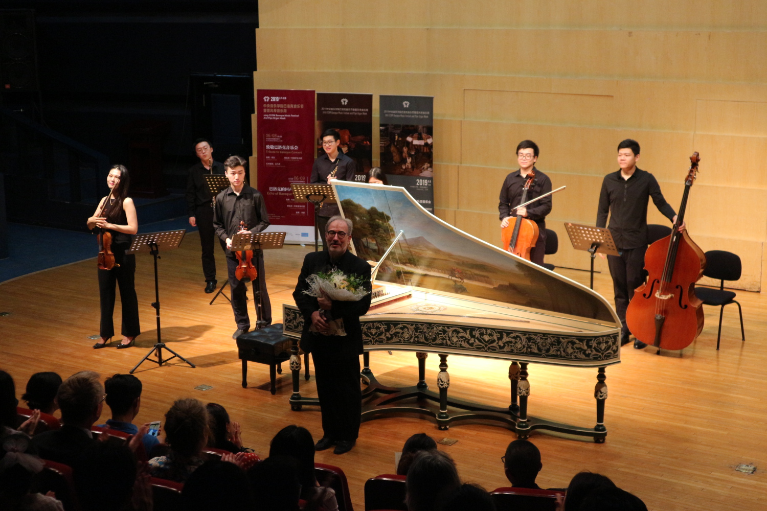 在琴房楼演奏厅举行《巴洛克的回声音乐会》,由Rafael Palacios指挥管弦系一年级学生演奏巴赫与法什的组曲。浩瀚宇宙中一颗以中国科学家名字命名的星星,即周又元星的天文物理学家周又元院士也坐在观众席里欣赏巴洛克音乐。