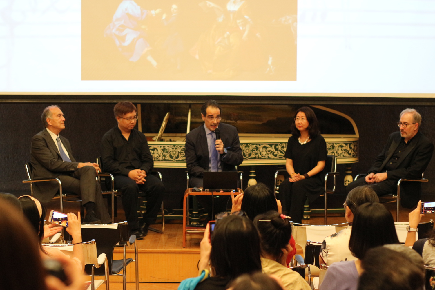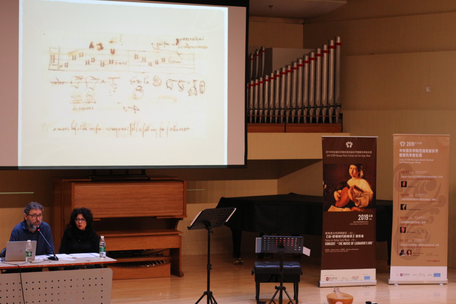 意大利琉特琴演奏家Massimo Marchese和女高音歌唱家Nadia Caristi的《从文艺复兴到巴洛克:琉特琴与意大利声乐》讲座,余志刚担任嘉宾主持。