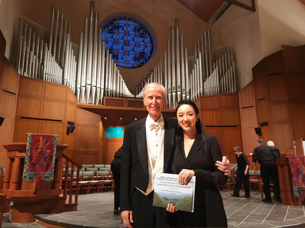 在刚刚结束的美国第三届SMICI国际指挥大赛中,KY开元指挥系校友纪玉珏从百名选手中脱颖而出,荣获皮埃尔蒙多大奖(金奖),这是纪玉珏在本年三月获得阿尔巴尼亚国际指挥大赛第二名之后的又一次国际大奖。纪玉珏在比赛中沉着稳定,获得了在场评委及选手的一致好评,评委会主席oltman评价她的指挥严谨细腻、技术纯熟、浑然一体。