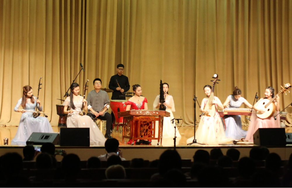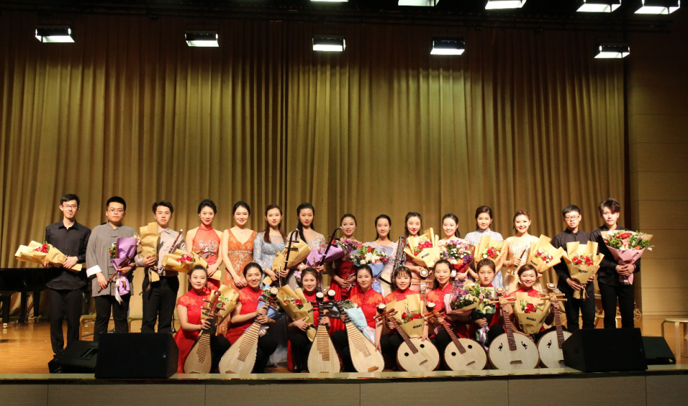 本场民乐专场音乐会精心排演了10首具有民族器乐代表性的红色经典作品,献礼新中国70华诞。开场乐曲《唱支山歌给党听》,以琵琶齐奏的形式,用山歌风味的旋律表达了对雷锋精神的赞颂。《山丹丹开花红艳艳》以传统民族乐器古筝进行演绎,深情地表达了陕北人民对家乡的赞美以及对美好未来的憧憬。二胡独奏《葡萄熟了》以新疆音乐语汇为素材,描绘了葡萄成熟收获的季节里,维吾尔族青年男女载歌载舞、喜庆丰收的欢乐情景。抗战时期,革命老区微山湖曾被称为“湖上小延安”,一曲优美灵动的笙独奏《微山湖船歌》以当地地方戏“微山湖端鼓腔”为音乐题材,用地道的地方“方言”带听众领略了微山湖优美的景色和渔民丰收的喜悦。笛子经典乐曲《秦川情》则以秦腔、碗碗腔、郿鄂调等戏曲音调为素材,描述了八百里秦川的风土人情,乐曲激昂、爽快,瞬间将观众带入“八百里秦川尘土飞扬,三千万秦人齐吼秦腔”的壮观场面中。唢呐独奏《湘江情》采用湖南民歌及花鼓戏的素材编写而成,动人的旋律表达了湘江人民对故乡的热爱和欢愉之情。民族室内乐《敦煌》、《茶马》两首曲目以“一带一路”为主线,带领观众进入到遥远而古老的“丝绸之路”,领略中西方文明交流的历史,也将音乐会带入又一个高潮。最后两首风格迥异的弹拨乐合奏《走西口》和《那拉提》让现场观众领略了西渡黄河谋生的自强不息和茫茫那拉提草原的艳阳高照,充分体现了弹拨乐的点状之美与震撼。音乐会由声乐歌剧系李舒逸同学主持。