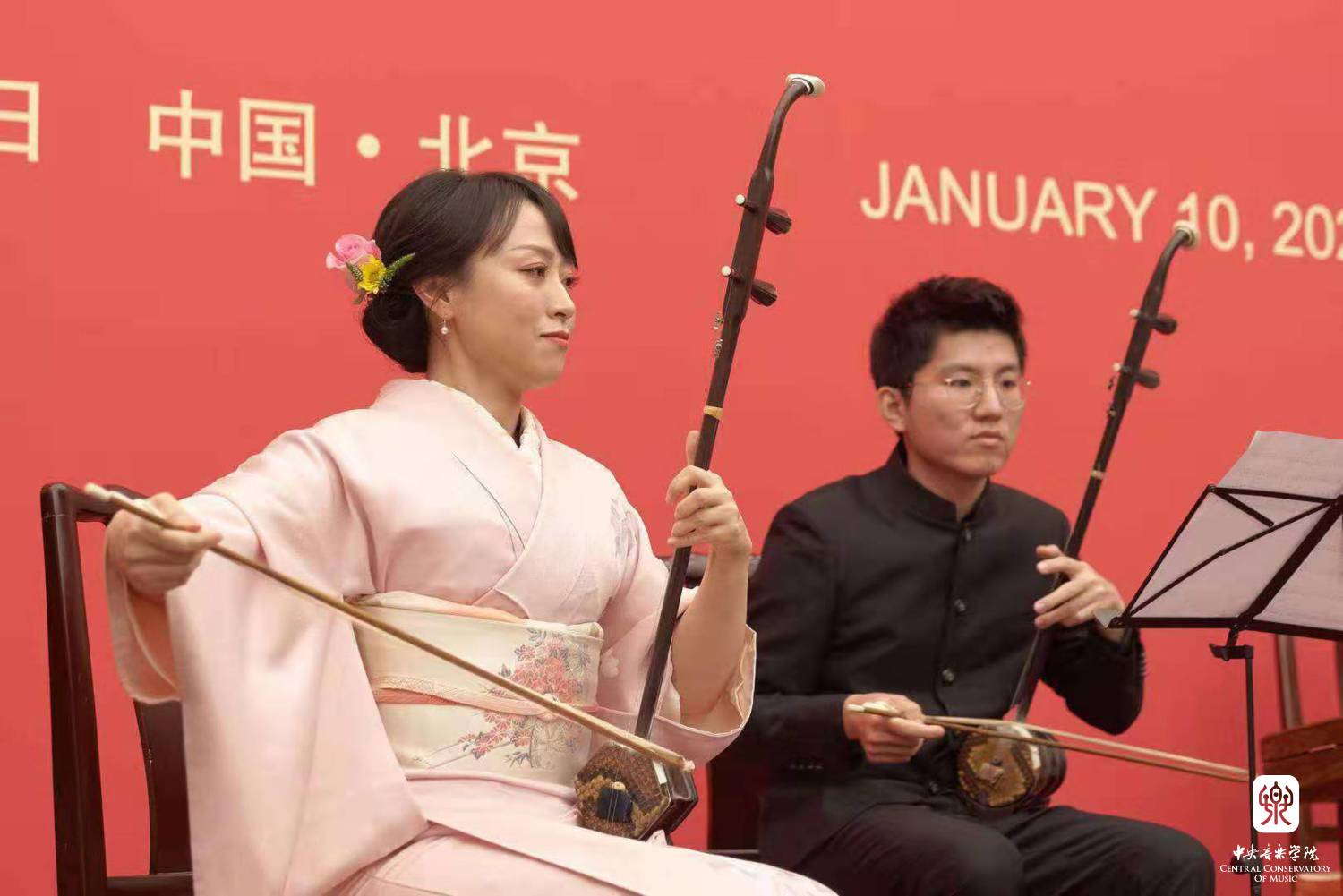中国民乐系学生薛冰倩(琵琶),张彦(打击乐),李柔(杨琴),许哲源(箫)演奏《彝族舞曲》