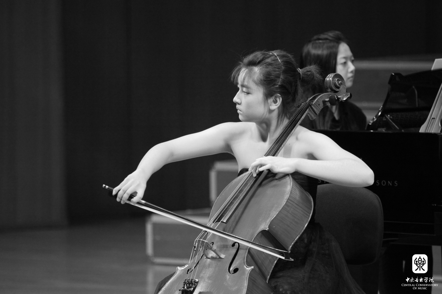 “ 2015年附中校友艺术节,大提琴专业张园晨同学正在演奏,她的沉静和美丽被定格在这一瞬间。”