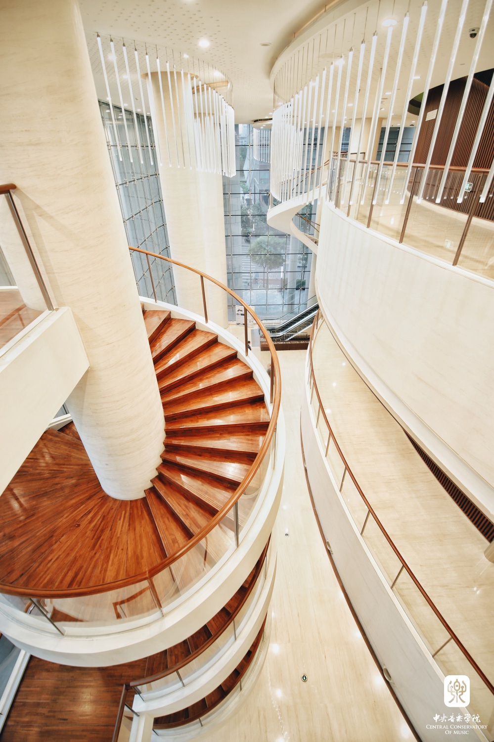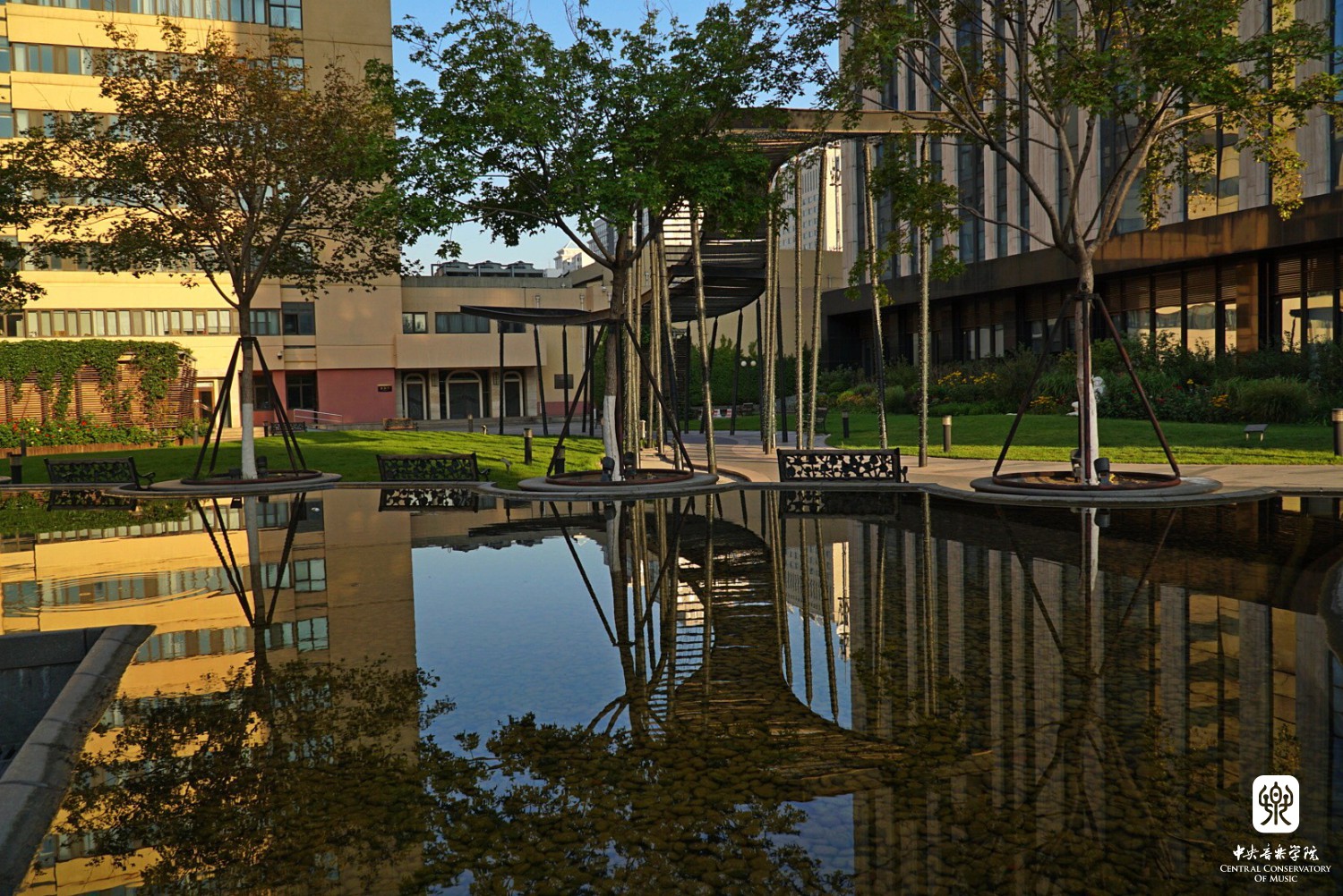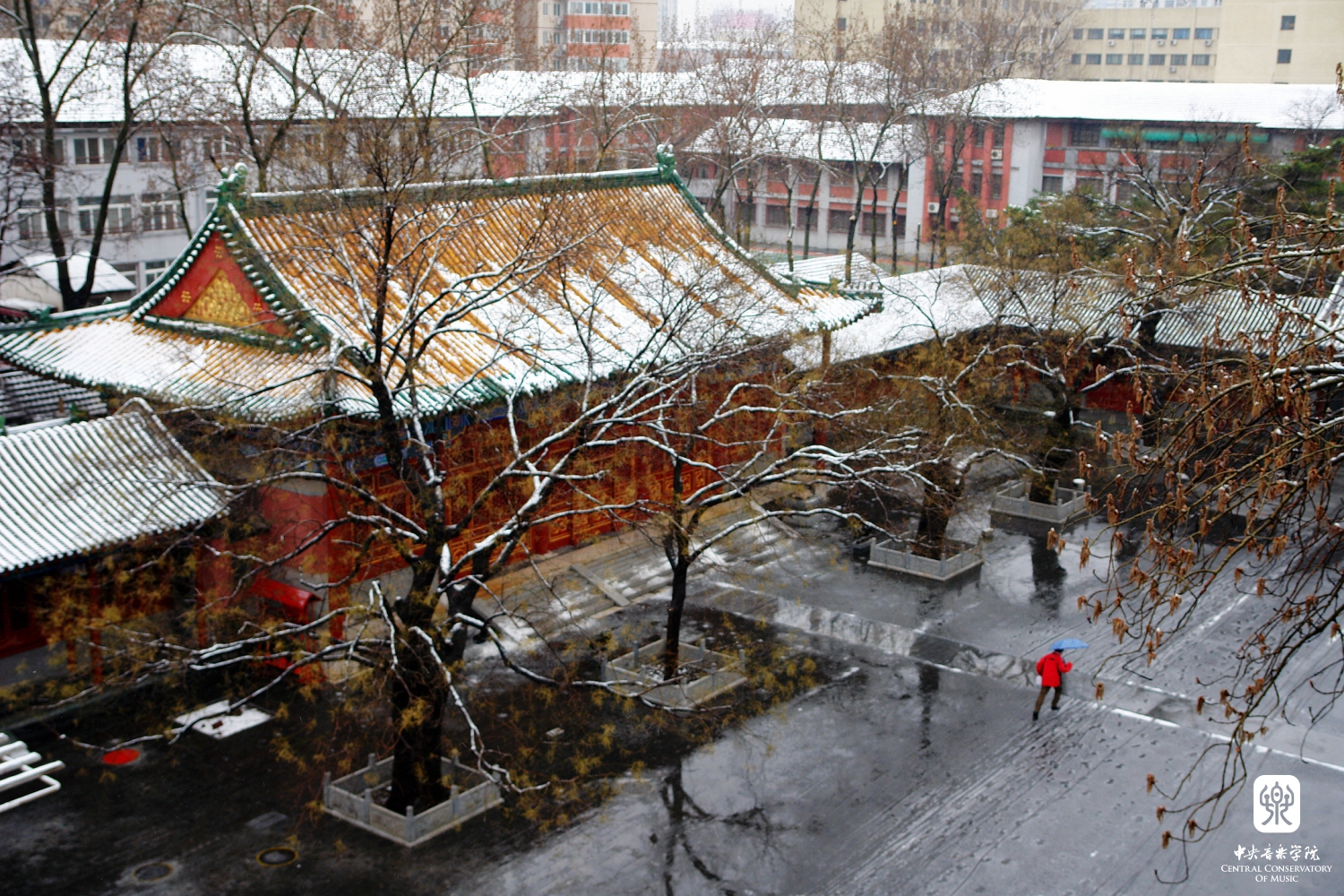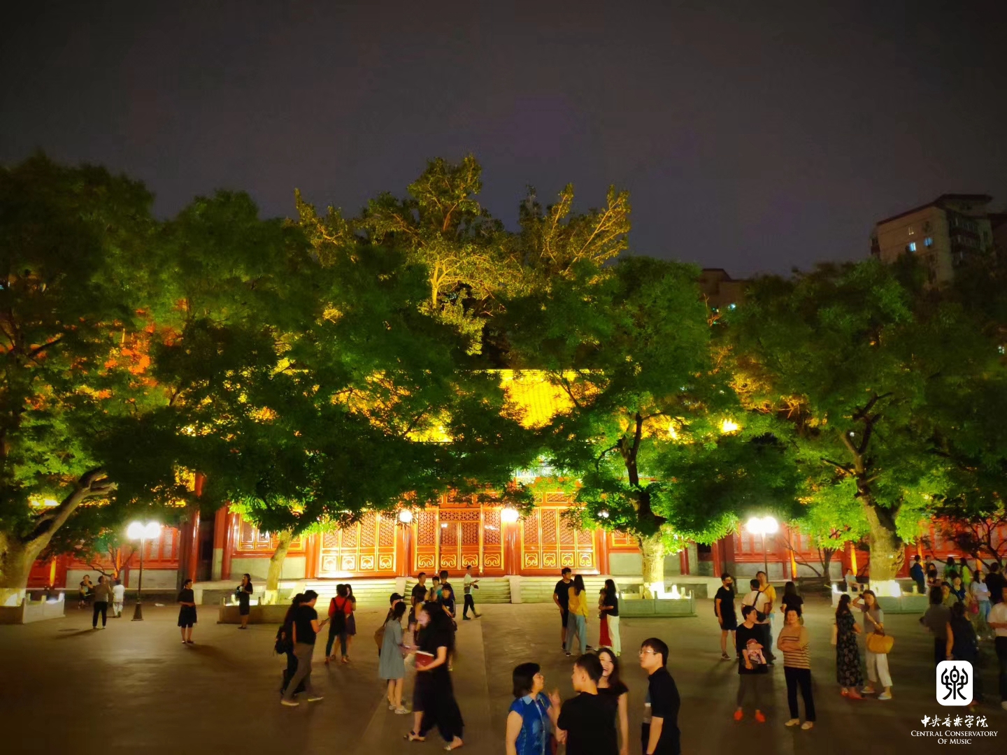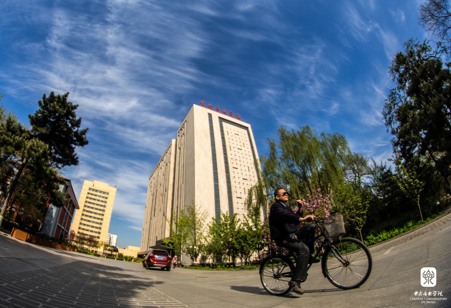 “ 照片选景突出学院建筑,既有王府院古建,也有曾经的附中教舍,被誉为“音乐家摇篮”的1号楼;还有现代化的教学楼、歌剧厅。美丽的校园孕育了几代音乐学子,培养了无数艺术人才,是中外瞩目的高等音乐学府。”