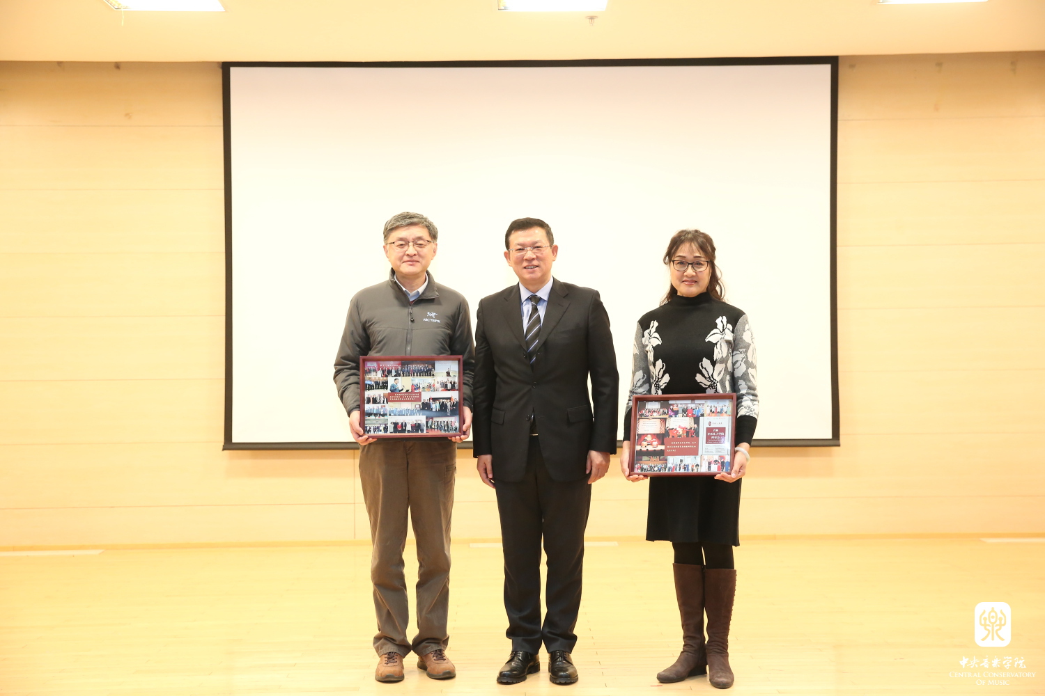 赵旻书记、俞峰院长、乌非院长为央音“外派故事”征集比赛一、二等奖代表:赵晓霞、帅微、申毅、于也媞、刘小菁颁奖