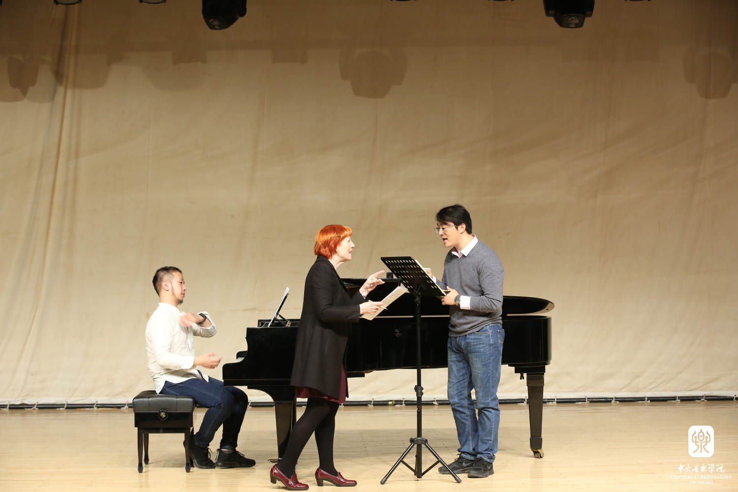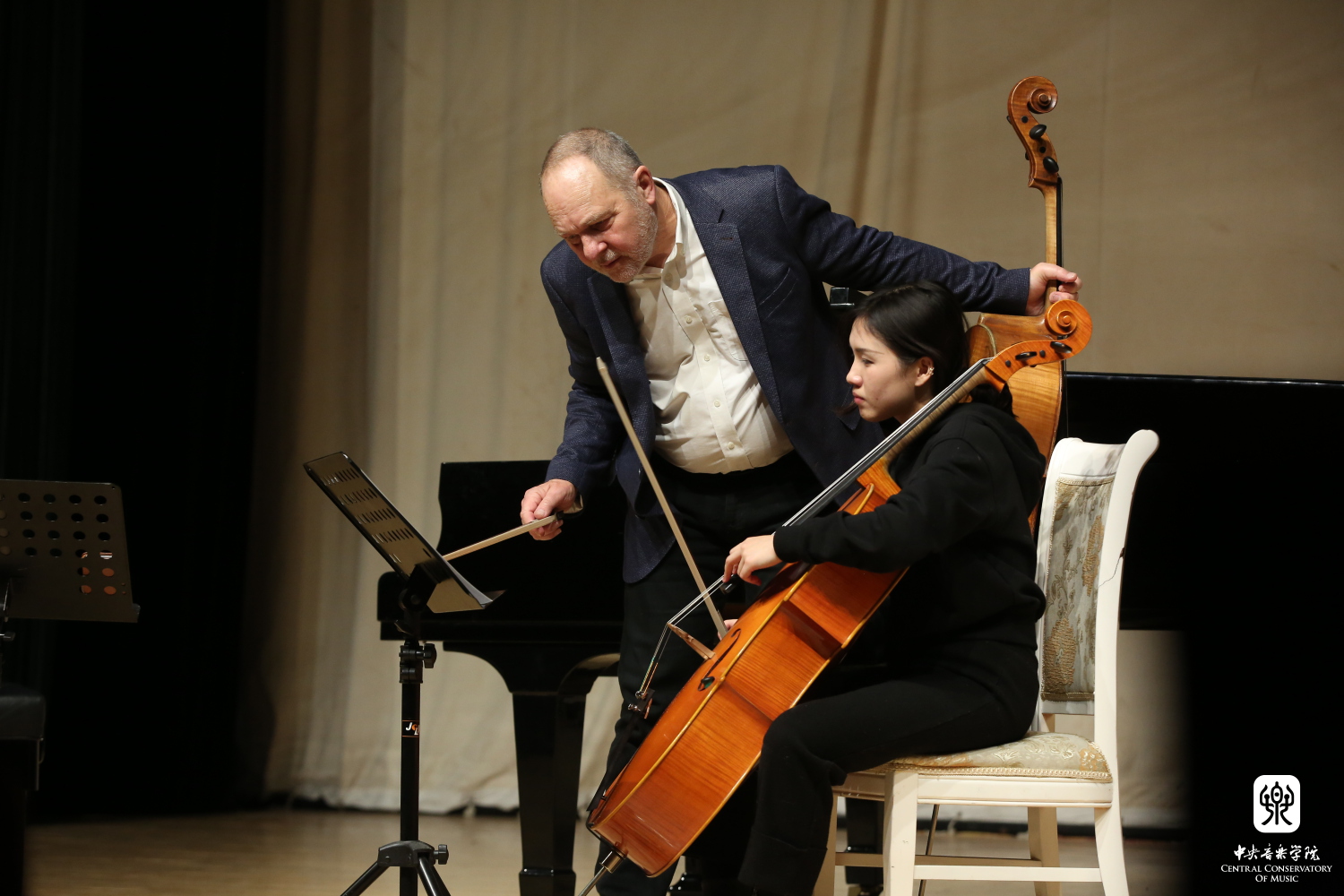 17日晚,乌非·莎弗里院长、伊娃·泰森教授和莫顿·左森教授分别再KY开元举办了打击乐、声乐和大提琴大师班,与央音师生互动交流,展示丹麦音乐孔院理事风采。
