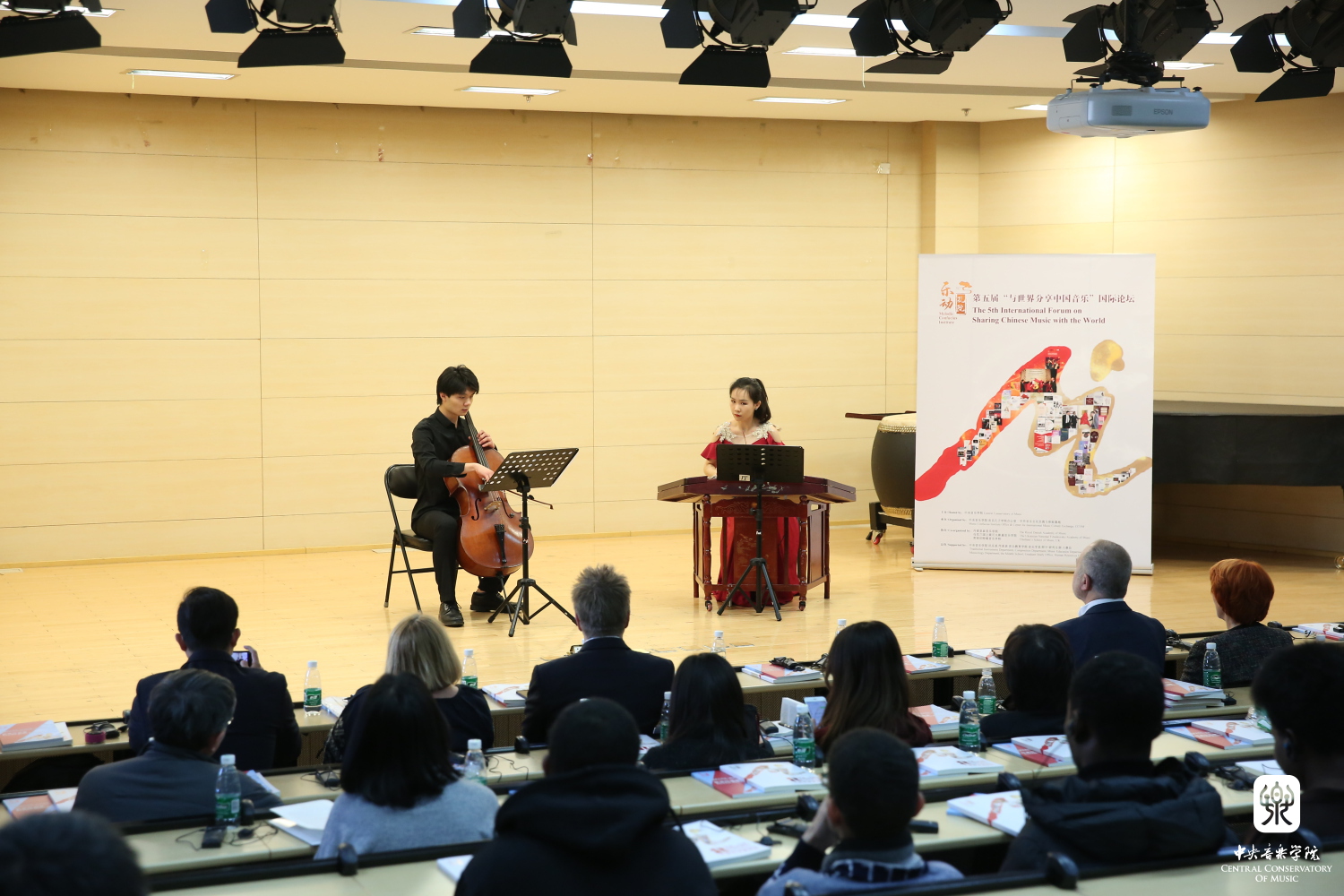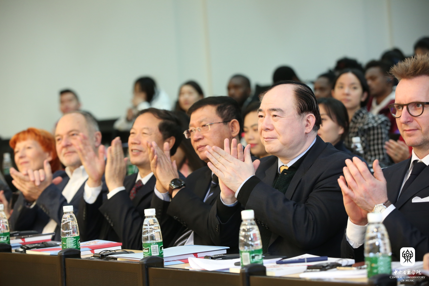 孔子学院总部副总干事马箭飞教授,KY开元党委书记赵旻研究员、院长俞峰教授,丹麦皇家音乐学院院长乌非·莎弗里(Uffe Savery)教授,乌克兰大使馆教育文化主管瓦伦蒂娜·奥利尼克(Valentyna Oliinyk)女士,英国大使馆文化教育处教育合作发展主任胡雪彬先生,丹麦大使馆公共外交官员坦加·克劳森(Tanja Clausen)女士,以及北京大学跨文化研究中心秘书长赵白生教授、丹麦音乐孔子学院外方院长玛丽安娜·雅各布森(Marianne Jakobsen)女士、KY开元音乐孔子学院办公室及基地主任刘月宁教授、音乐学系主任安平教授等领导嘉宾出席并致辞。