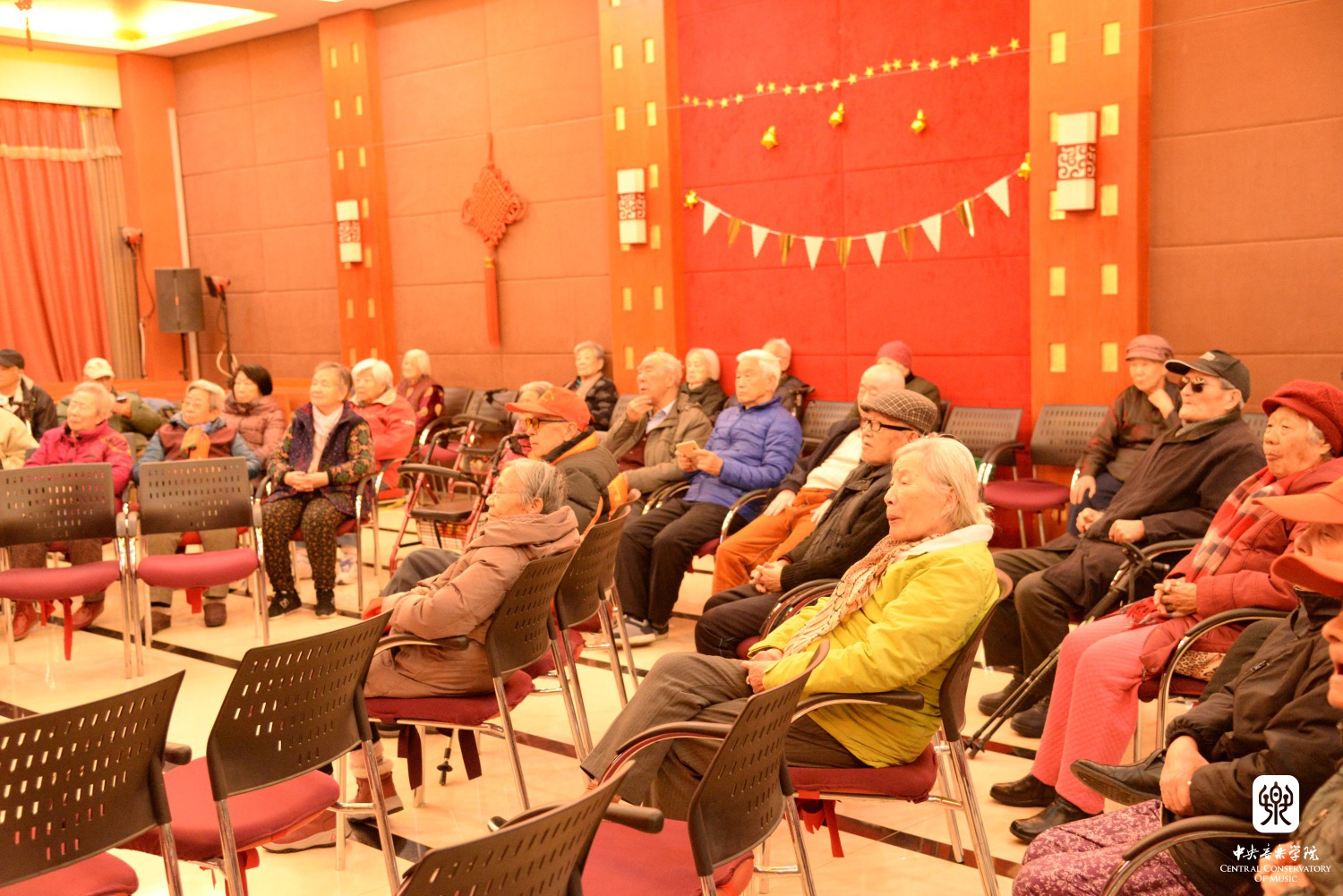 赠书仪式之后,在场老人们情绪高涨,跃跃欲试,在邢媛媛副社长的指挥、余原的钢琴和朱明月的小提琴伴奏下,大家一起演唱了《在那遥远的地方》和《茉莉花》。老人们纷纷都被这优美而怀旧的旋律所感动,也为拥有这样深厚的中华文化底蕴所自豪,并希望我们能常来跟他们分享中国优秀音乐文化。