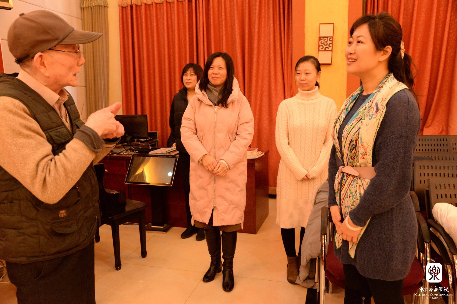 余老师通过音视频的播放引导老人们重点欣赏了《阿克塞哈萨克族自治县民歌乐谱辑录》里的哈萨克族民歌《金黄的麦子》《灰种马》,以及《全国< 茉莉花>乐谱辑录》里的各种版本的《茉莉花》,比如用方言演唱的江苏六合版《茉莉花》、民间艺人卢补良吹奏的器乐版《茉莉花》、黑龙江“二人转”风格的《茉莉花》及河北民歌手刘文金演唱的《茉莉花》等。此外,还为大家播放了《河北十番乐乐谱辑录》中的承德清音《惜黄花》。在聆听过程中,余老师为老人们简要地介绍了采风艺人使用的乐器、音乐结构等相关音乐背景知识,以便让他们更好地理解并欣赏这些音乐。其中,《茉莉花》不同版本的唱奏形式让老人们都觉得很新鲜,引起了老人们更多的共鸣,不禁赞叹道:“原来咱们中国还有这么多不同形式、不同风格的《茉莉花》,中国的传统音乐真是博大精深!”