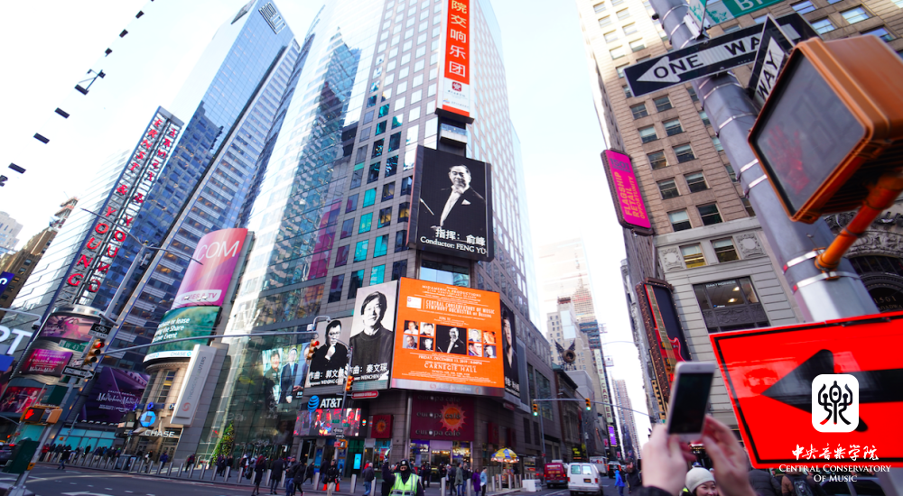 美国东部时间12月12日,这个被称为“世界的十字路口”的广场,迎来了KY开元集团官网的音乐家们。广场中心的一块巨型电子显示屏,滚动播放着KY开元集团官网交响乐团12月13日在卡内基音乐厅演出的巨幅海报,以及指挥俞峰教授和八位作曲家的照片。