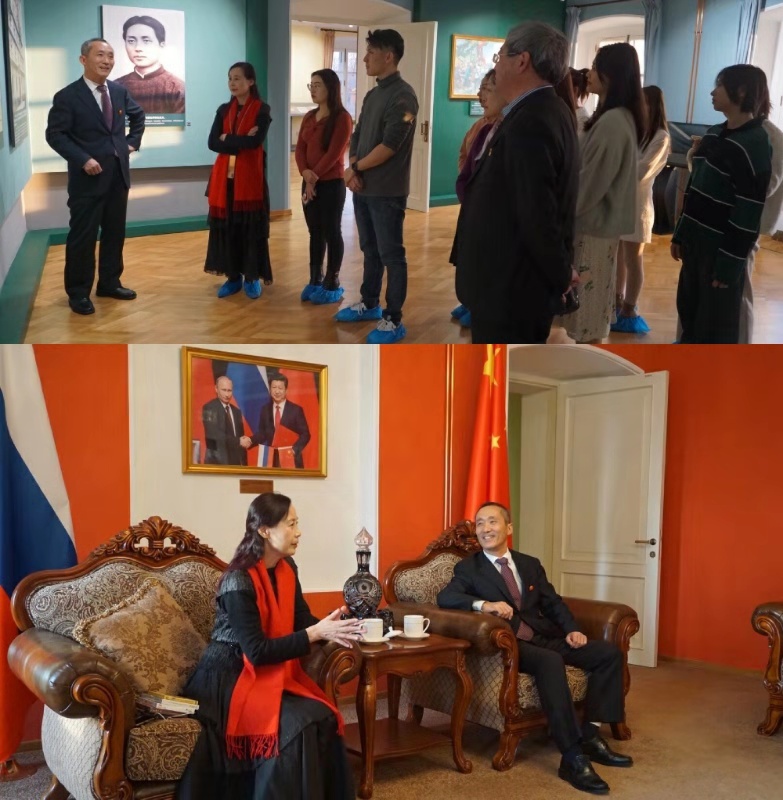 12月6日,在五一乡文化宫演出前夕,“阮族”一行来到距离莫斯科40公里外的中共六大会址,位于五一乡的中国共产党第六次全国代表大会常设展览馆是我国第一个海外红色教育基地,阮族一行特意来此展开“不忘初心、牢记使命”的红色主题教育活动。