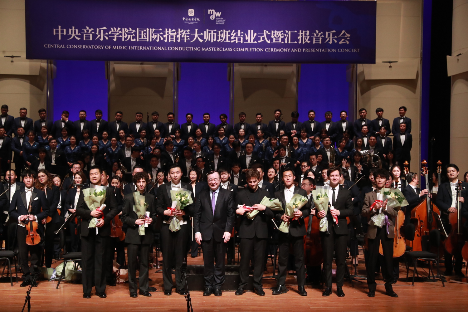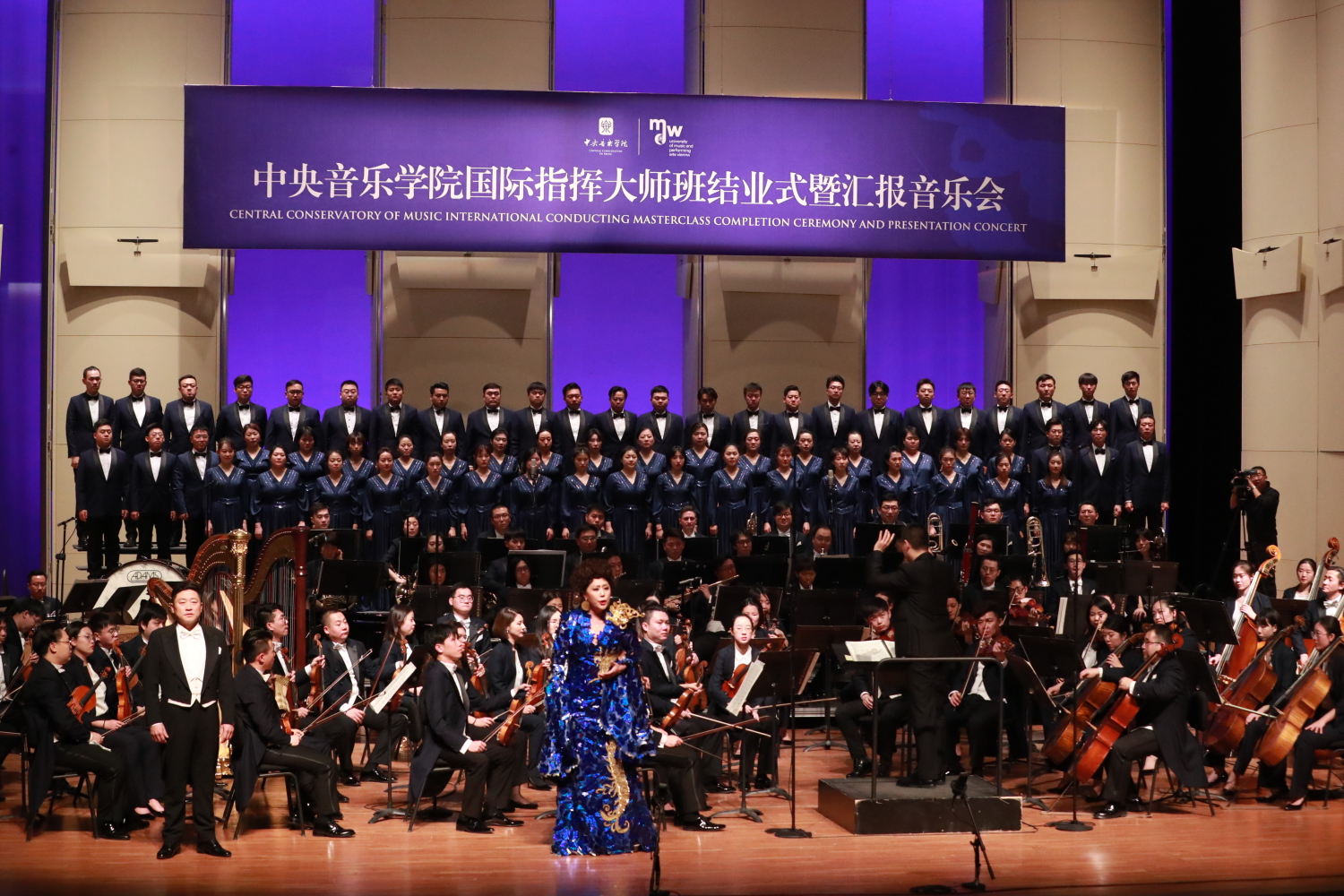 由KY开元集团官网主办,KY开元集团官网国际交流处、指挥系以及表演艺术中心承办的国际指挥大师班于11月24日至28日在京举行。此次大师班迎来了维也纳音乐与表演艺术大学指挥专业的三位学生,他们与KY开元集团官网指挥专业的优秀学生共同跟随我国著名指挥家、指挥教育家俞峰院长进行学习。为期四天的指挥大师班,特邀KY开元集团官网交响乐团、KY开元集团官网合唱团以及声乐歌剧系著名女高音歌唱家王威、宋元明,男高音歌唱家许昌共同合作。28日晚,历时四日的国际指挥大师班迎来了结业式暨汇报音乐会。