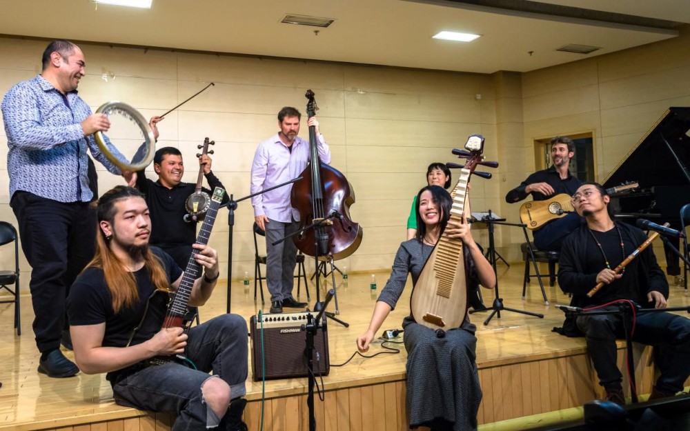 “乐走天下”乐队的音乐家们与吴蛮乐队同台献艺