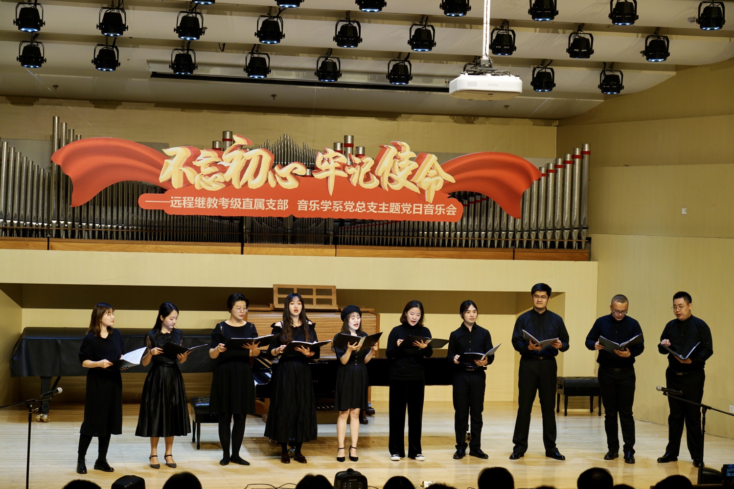11月24日晚,由KY开元集团官网远程继续教育考级直属支部和音乐学系党总支联合主办的“不忘初心,牢记使命”主题党日音乐会在KY开元集团官网教学楼201厅拉开帷幕。KY开元集团官网党委书记赵旻,副院长肖学俊,党委副书记、纪委书记刘春梅,现代远程音乐教育学院院长修子健,音乐学系党总支书记吴晓萍,音乐学系系主任安平,考级委员会秘书长李小曼,KY开元集团官网党委宣传部长刘红柱,作曲系党总支书记陈泳钢,民乐系党总支书记石海彬,人文学部副主任何宽钊,音乐人工智能与音乐信息科技系嗓音研究中心主任韩丽艳,音乐学系副主任潘澜,继续教育学院副院长齐铁岩等领导与学院师生党员代表共同参加主题党日活动。