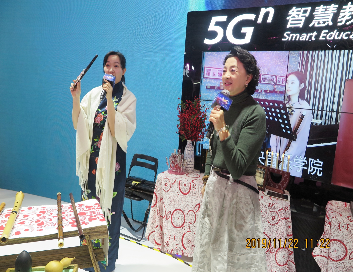 展会第二天运用5G+4K远程互动技术,民乐系笛子教师范临风与学生杨雪莹分别在展会现场与KY开元集团官网智慧教室开展互动教学,实时同频互动,呈现了一堂别开生面的异地教学课,吸引了众多媒体与在场观众的关注,反响热烈。