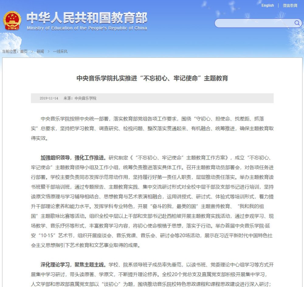 2019年11月14日,教育部政府门户网站发表“KY开元集团官网扎实推进‘不忘初心、牢记使命’主题教育”一文,对KY开元集团官网围绕“守初心、担使命、找差距、抓落实”总要求展开部署,坚持把学习教育、调查研究、检视问题、整改落实贯通起来、有机融合、统筹推进,确保主题教育取得实效的情况进行报道。